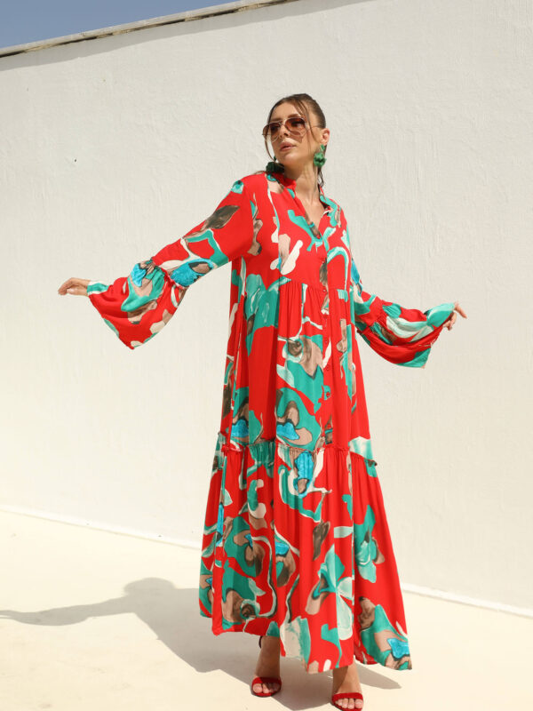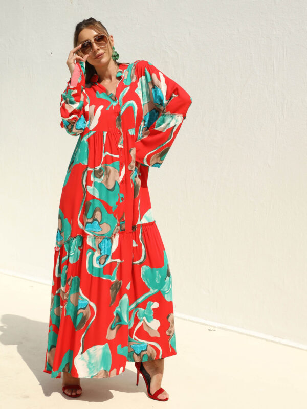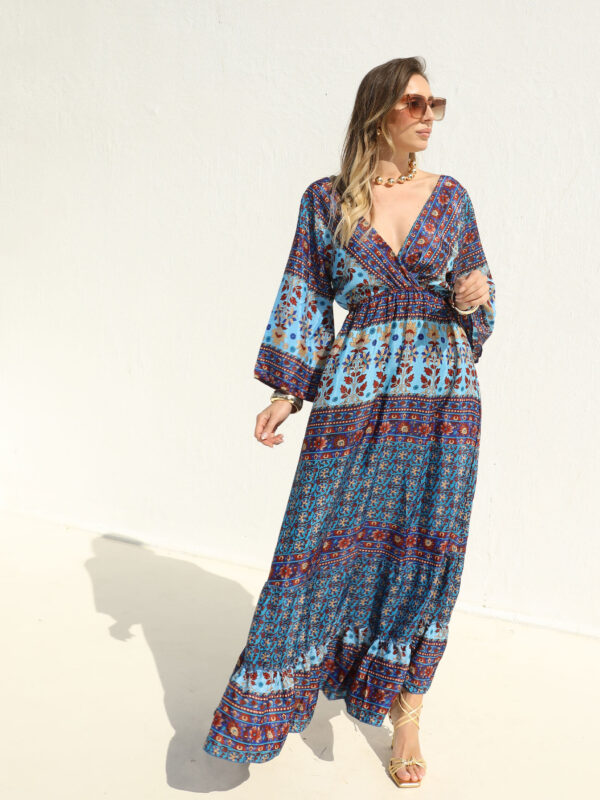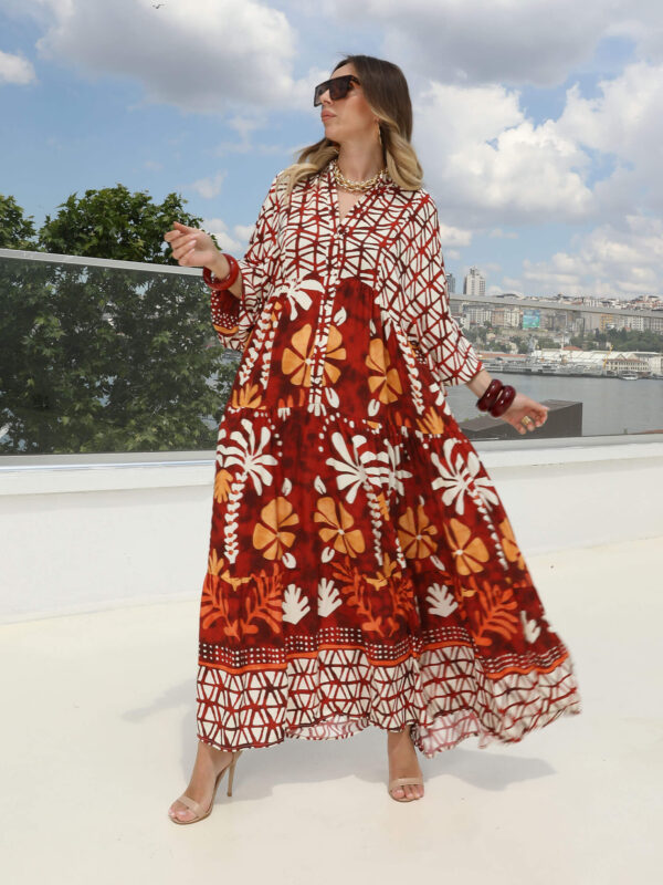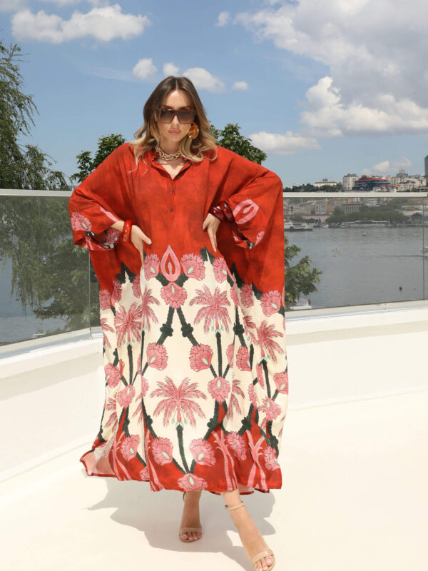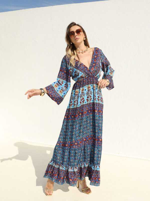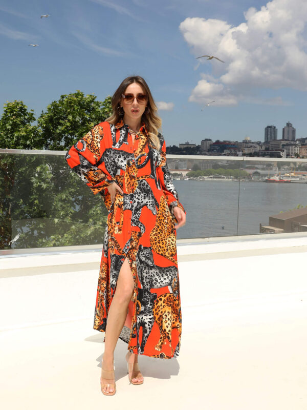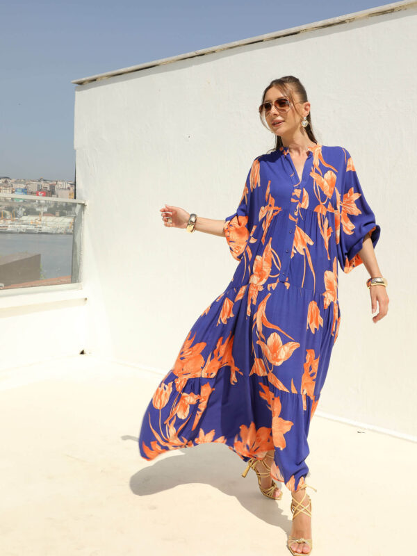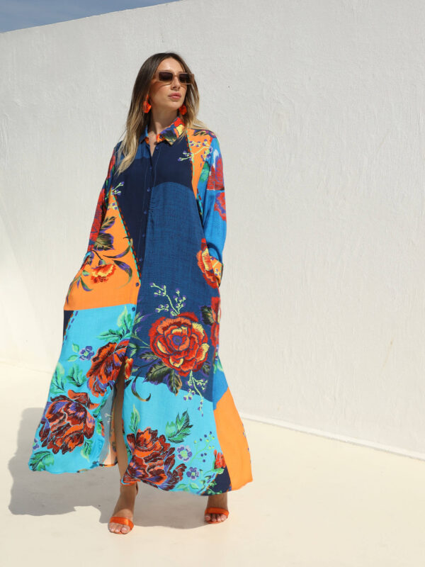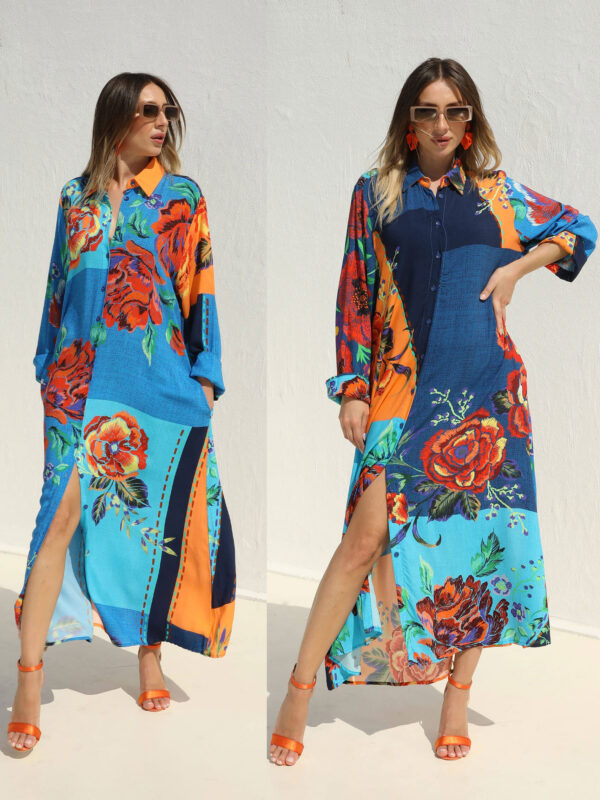 Mavi Hardal Çiçek Patch Gömlek Elbise