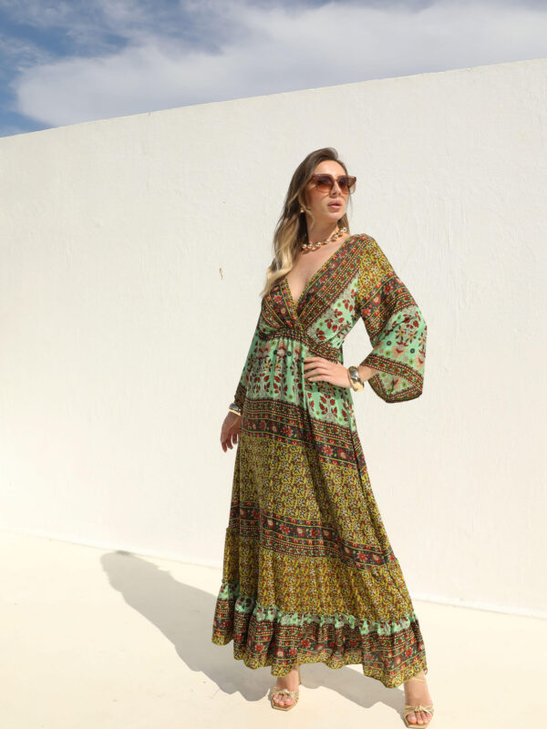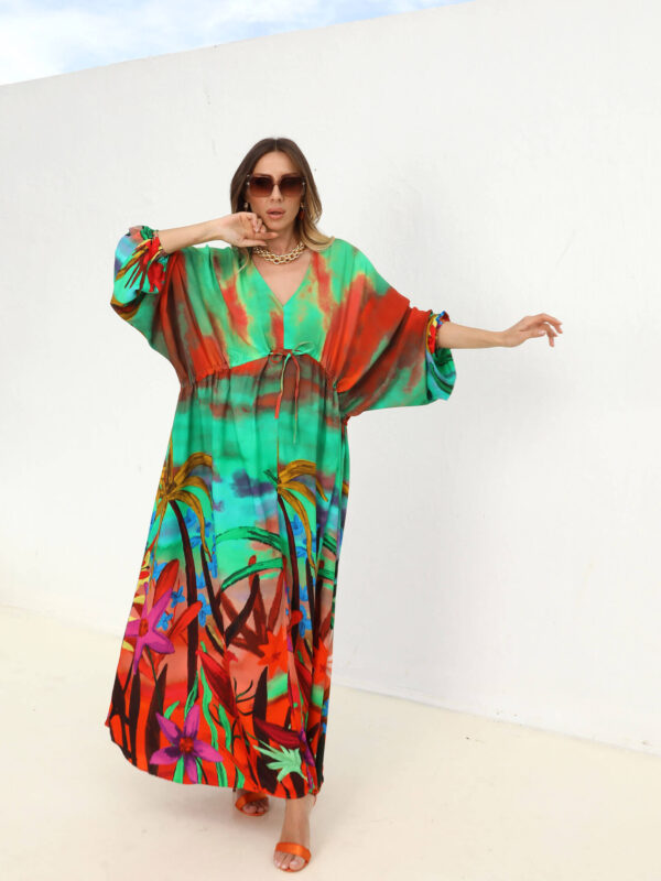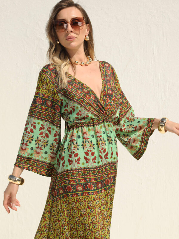 Yağ Yeşili Sırt Bağlama Siya Elbise