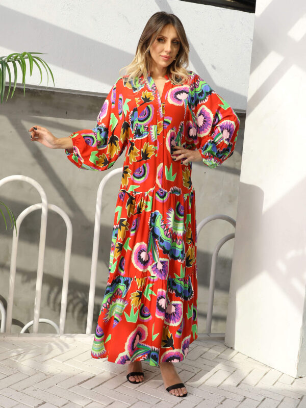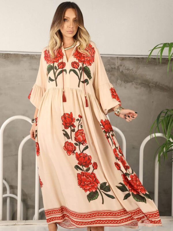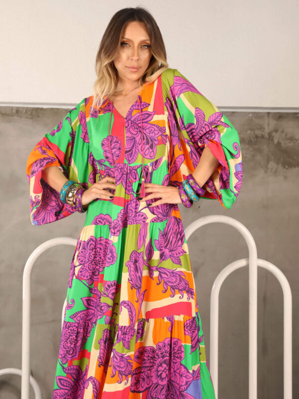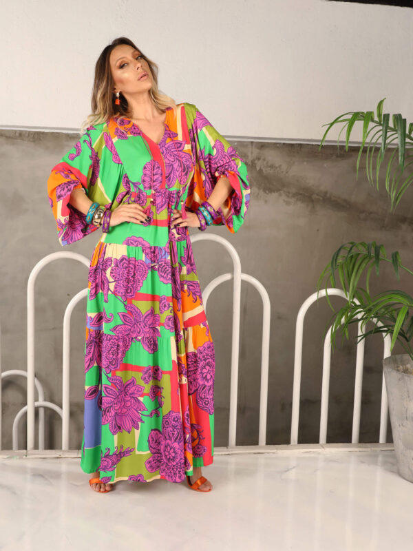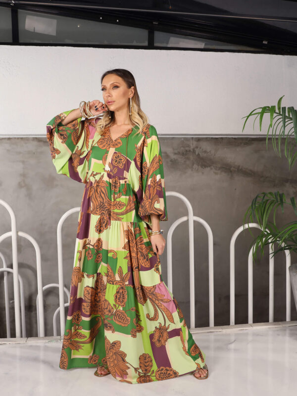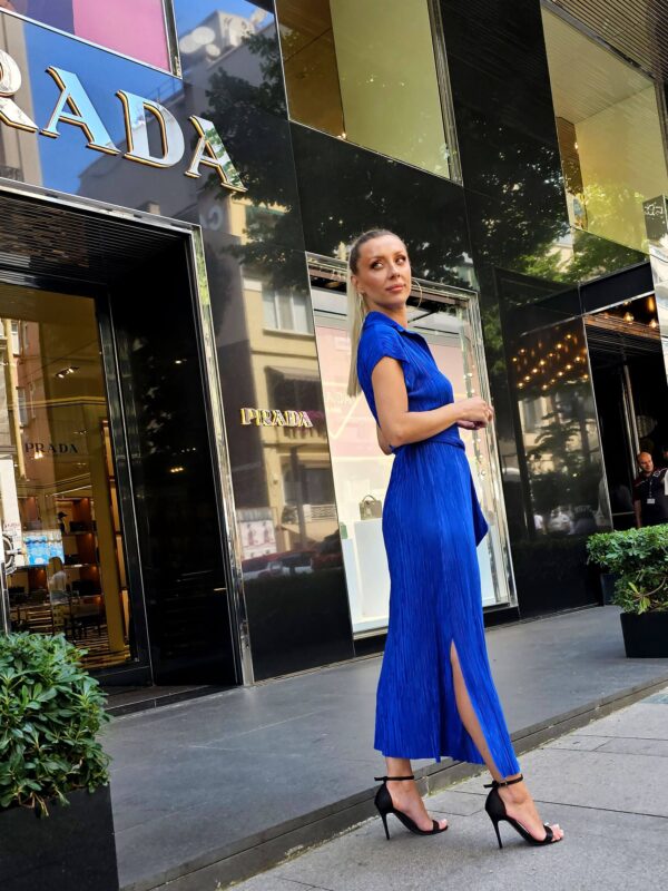 Saksrengi Polo Yaka Krinkıl Kolsuz Elbise