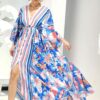Bebe Mavi Çiçek Desen V Yaka Elbise