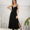 Bebe Mavi Şal Desen Soria Keten Elbise