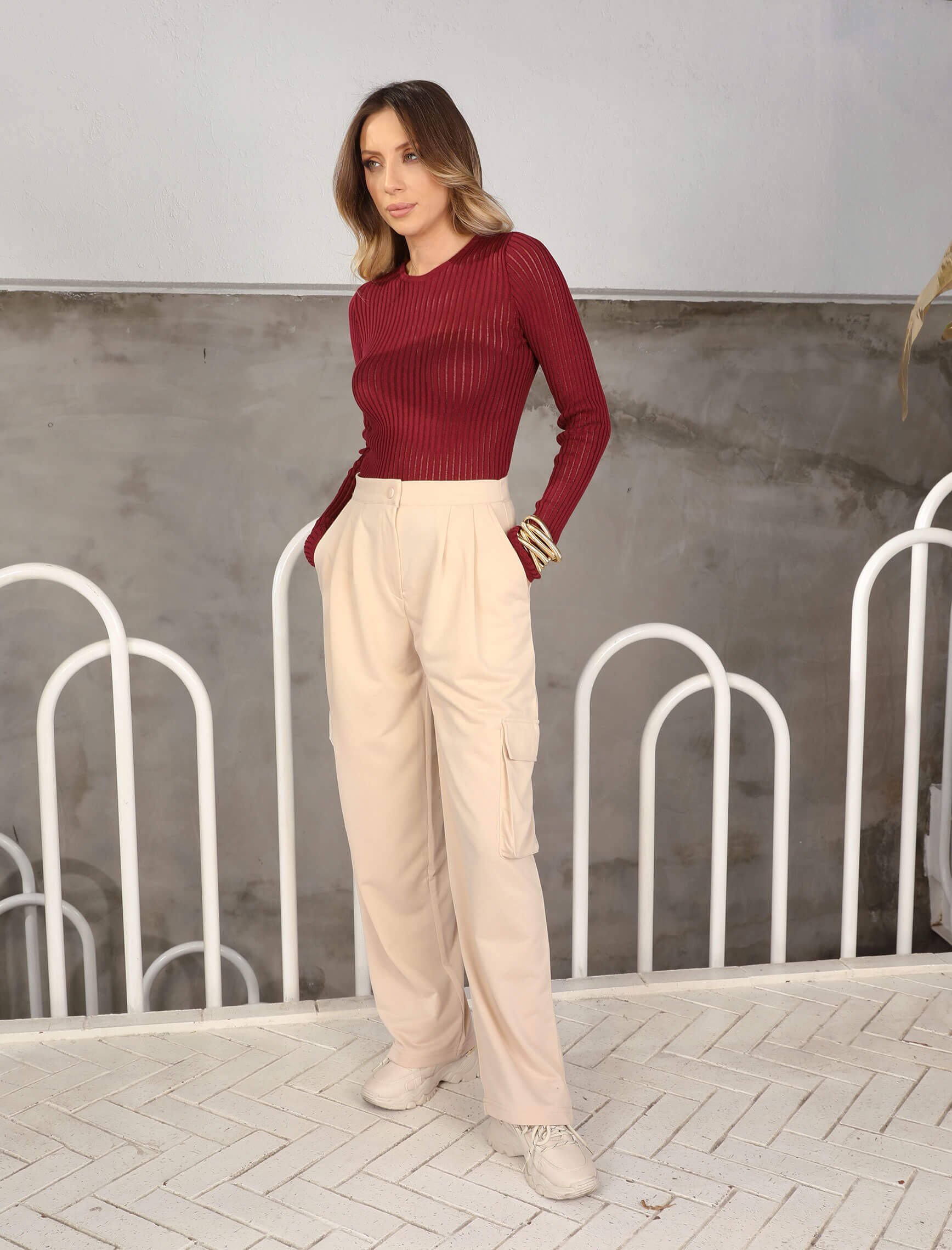 Bej Kargo Cep Palazzo Pantolon