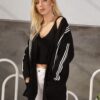 Bej Siyah Çizgili Crop Hırkalı Takım
