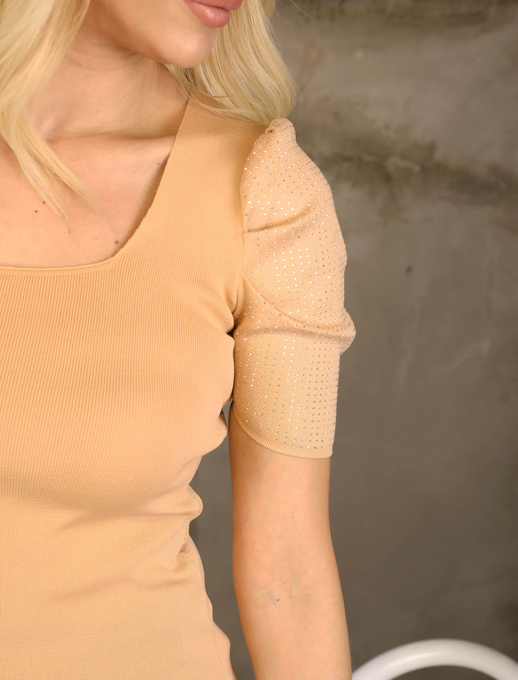 Bej Yarım Kol Kare Yaka İstiridye Triko