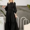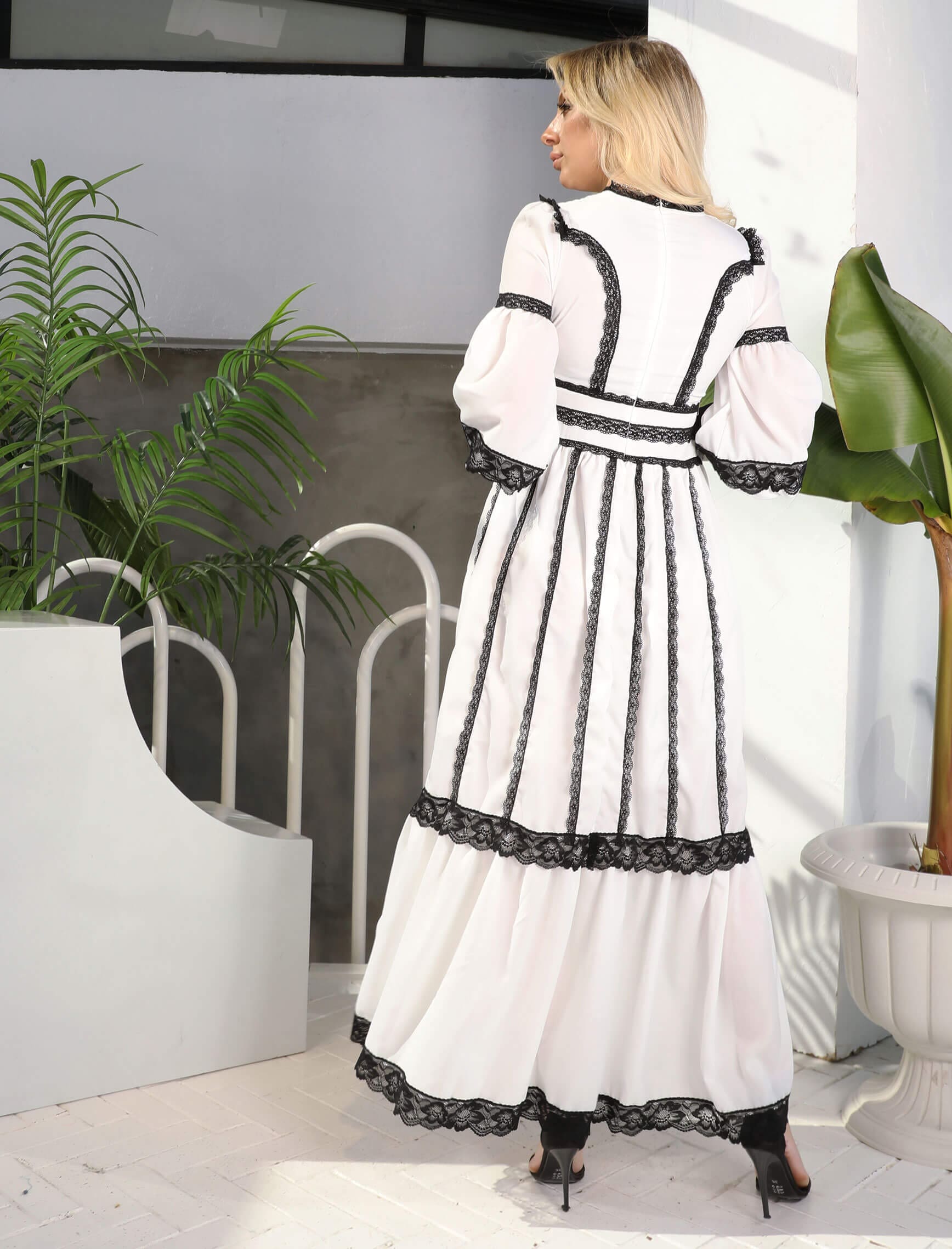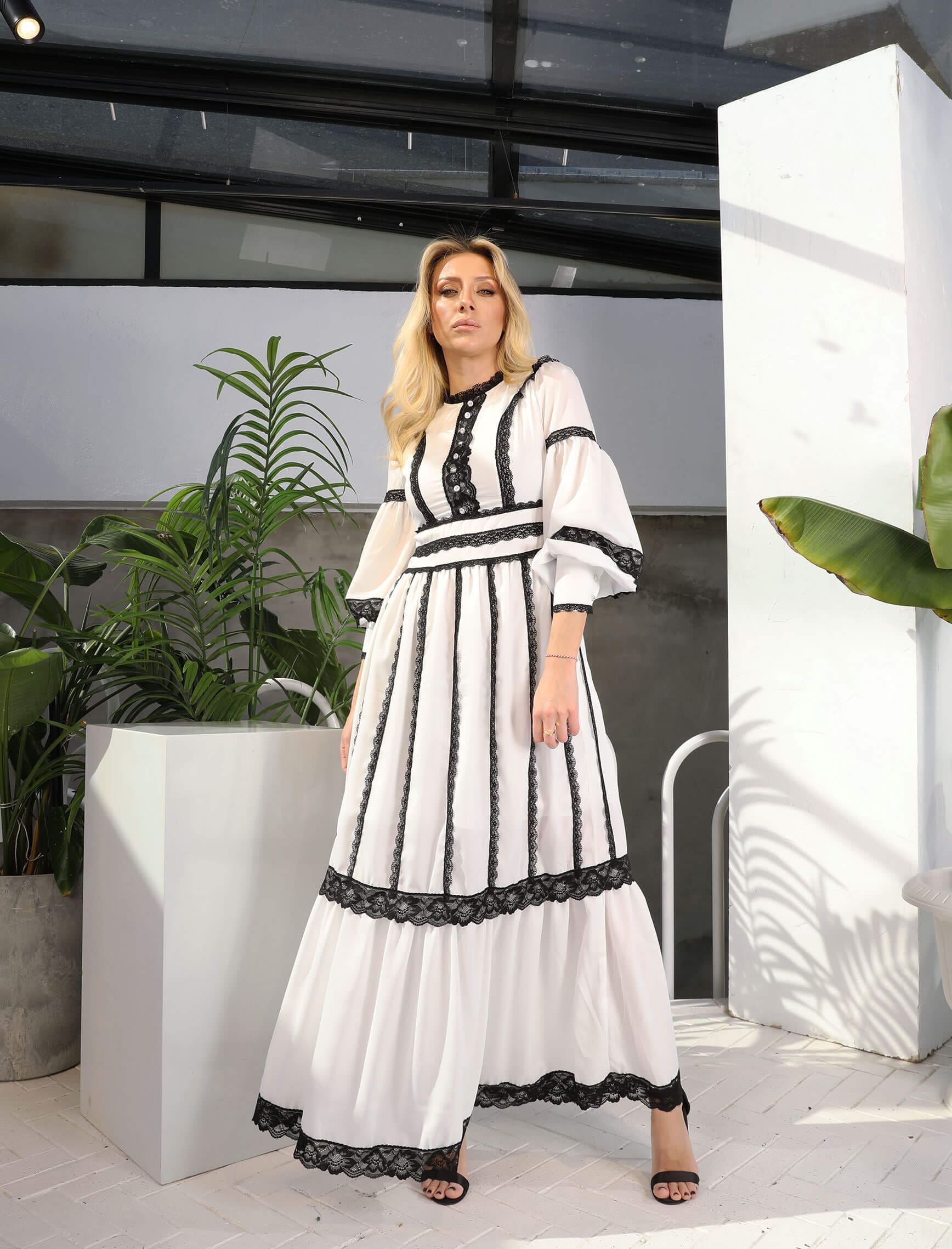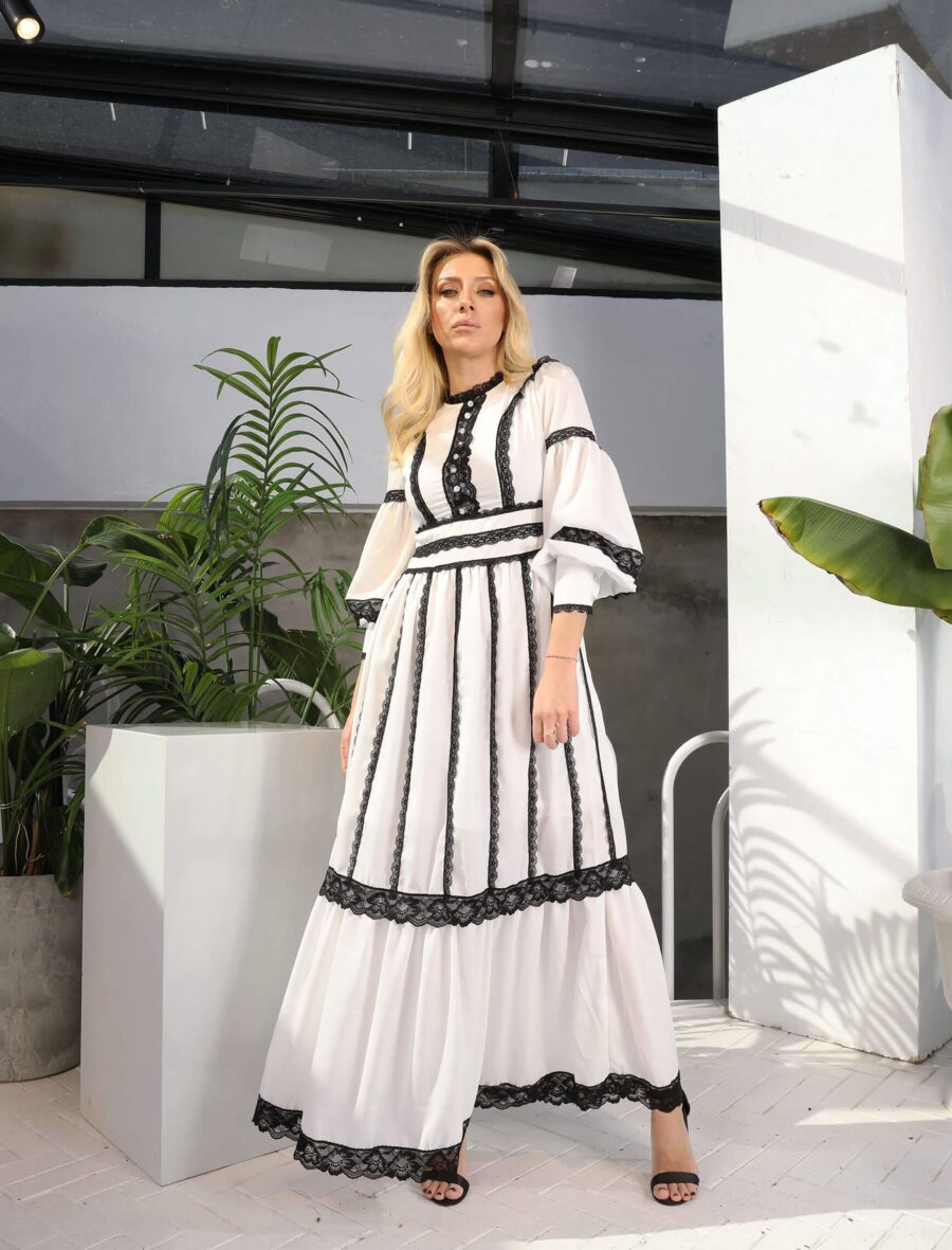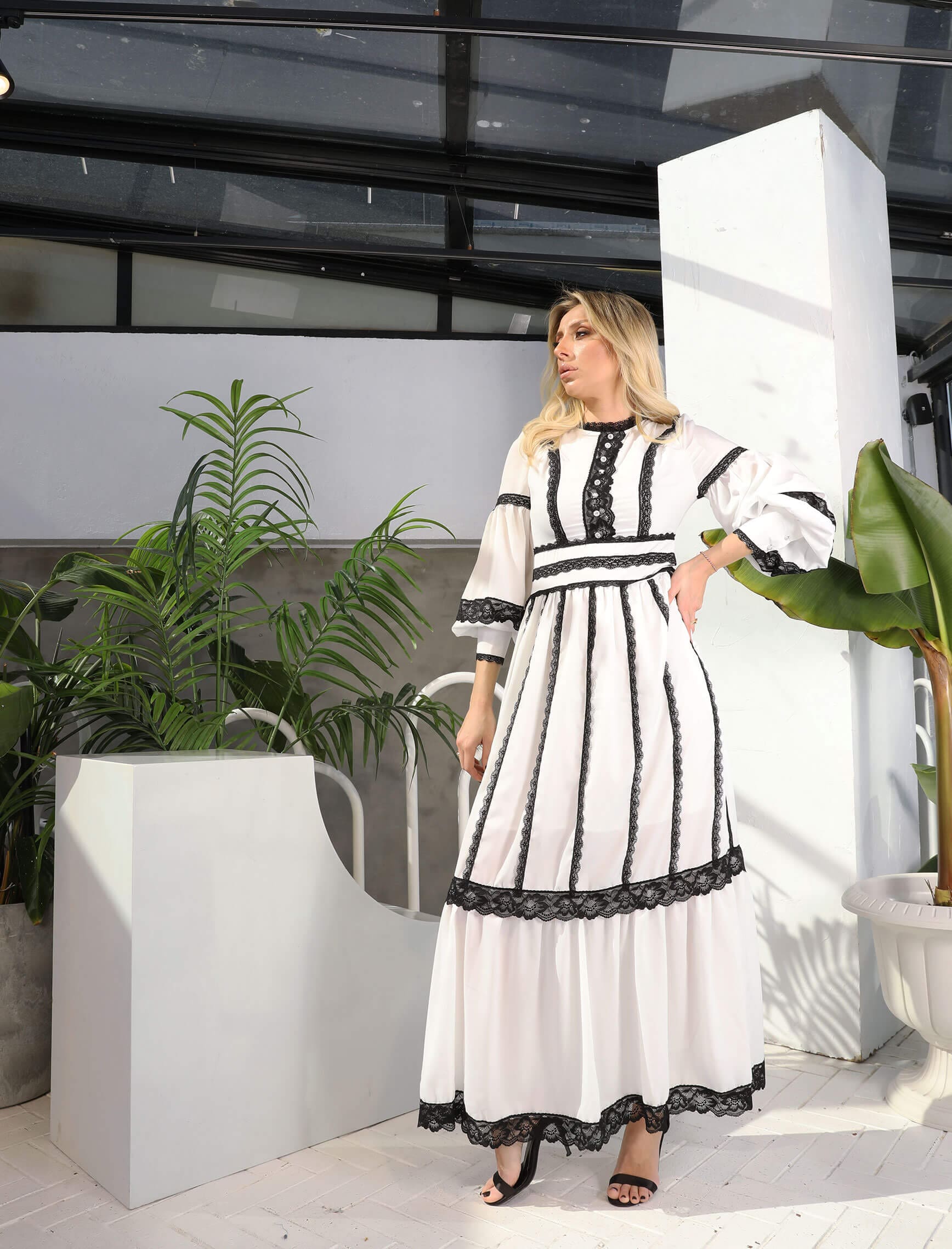 Beyaz Siyah Taş Düğme Fisto Detay Tierro Elbise