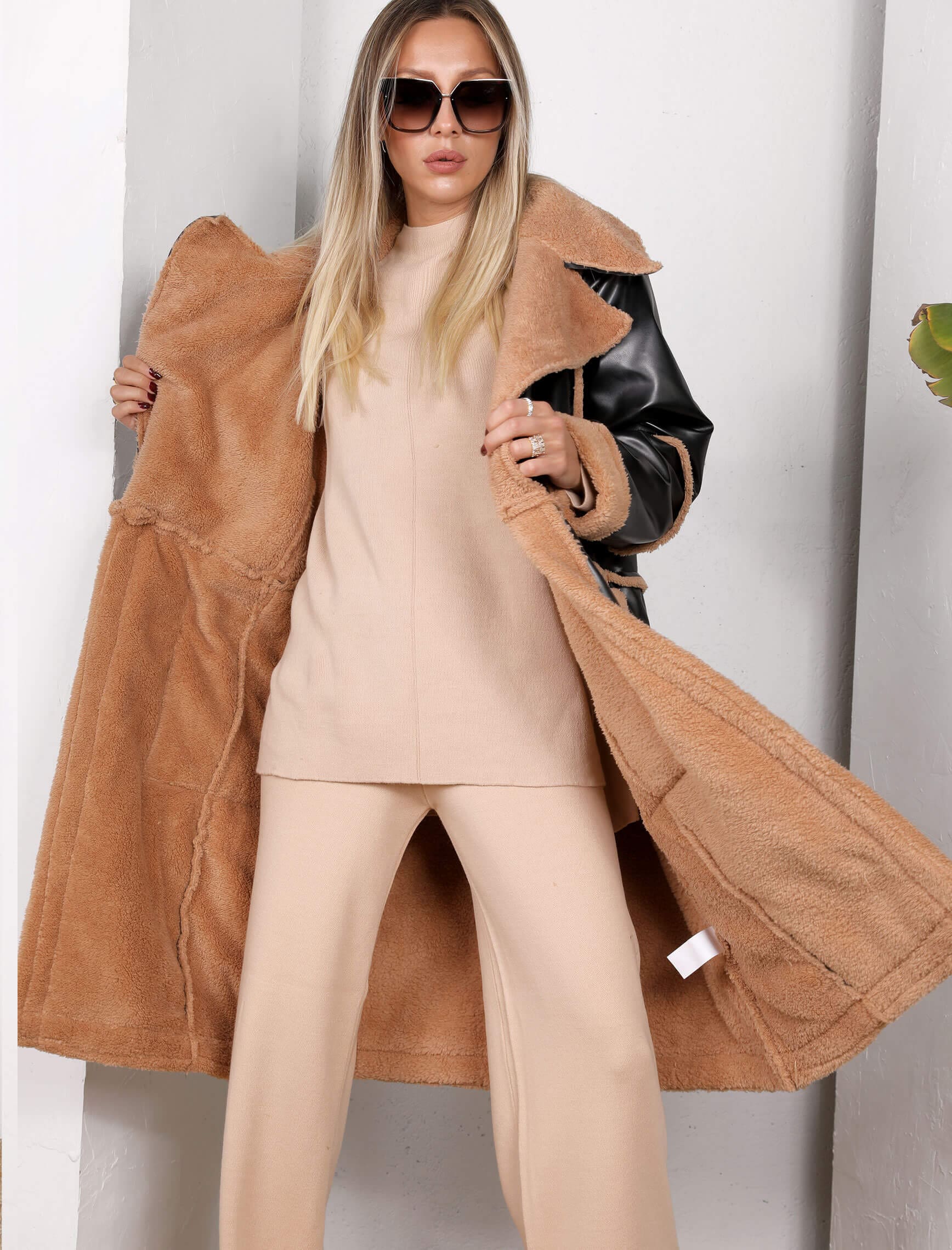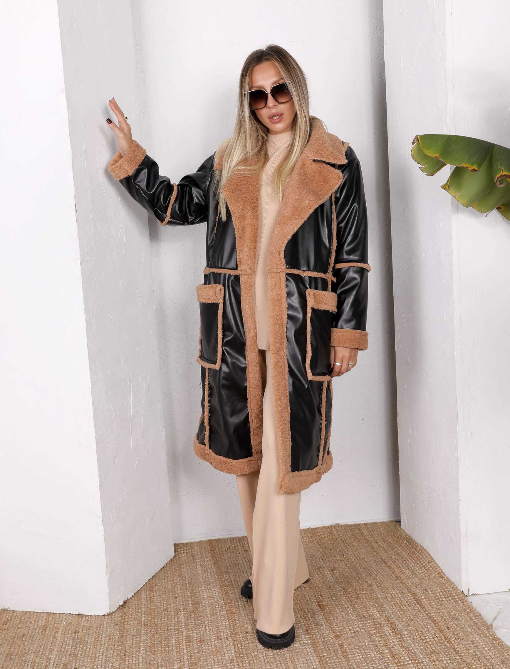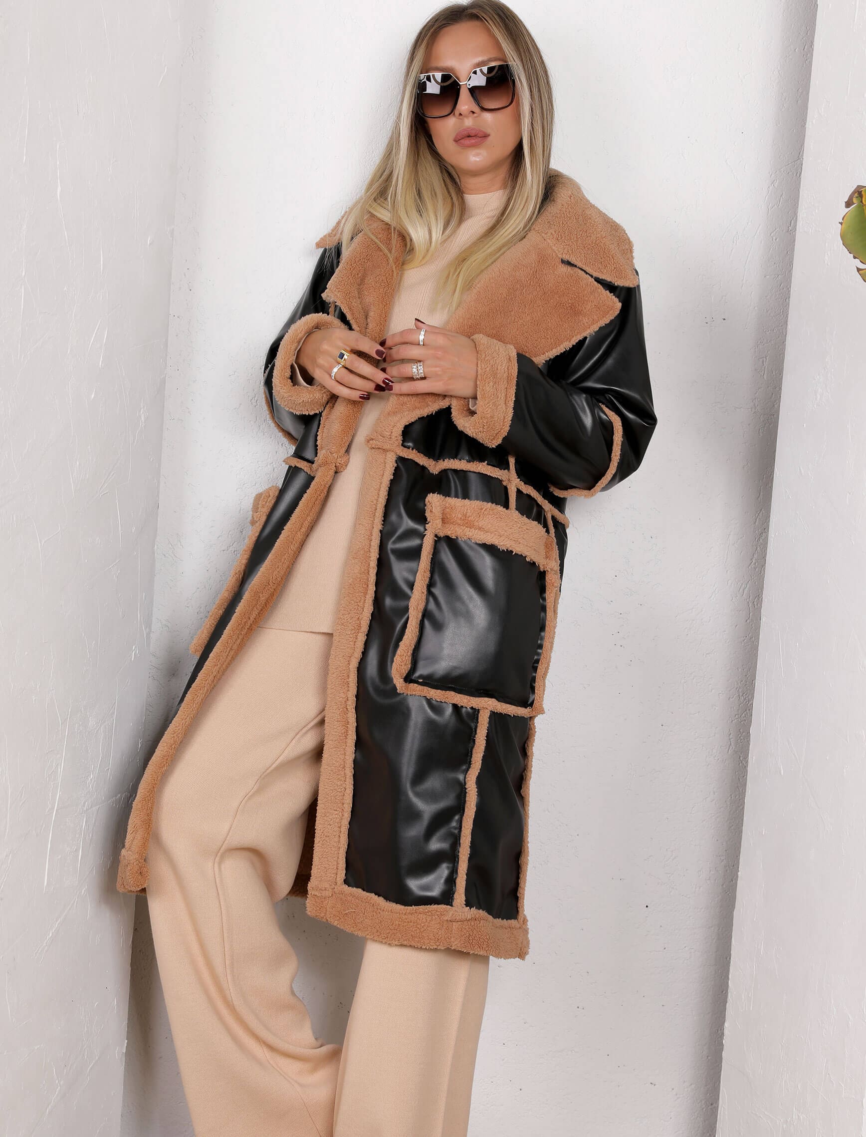 Camelrengi̇ Peluş Detay Si̇yah Deri̇ Kaban