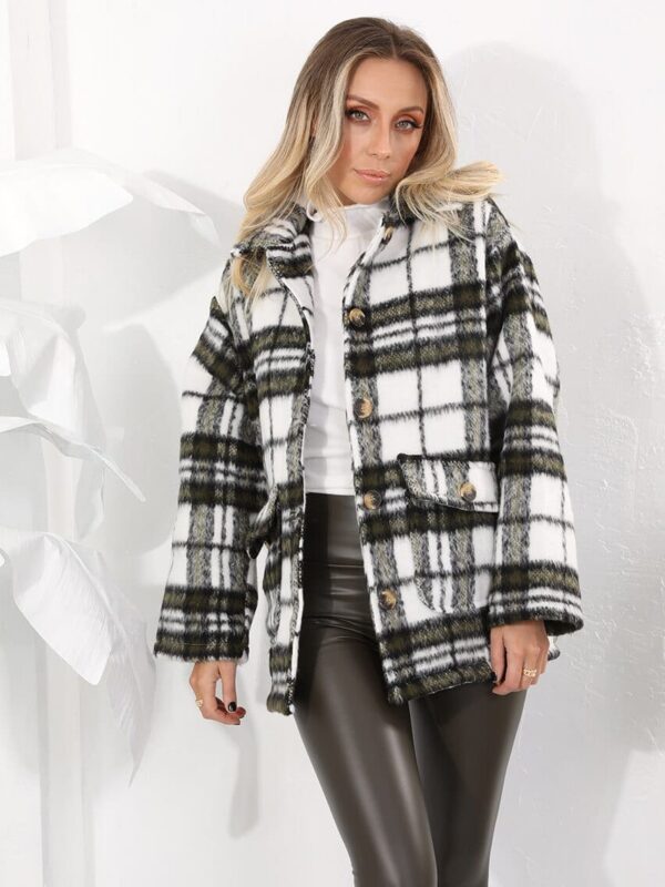 Beyaz Yeşil Ekose Kaşe Ceket