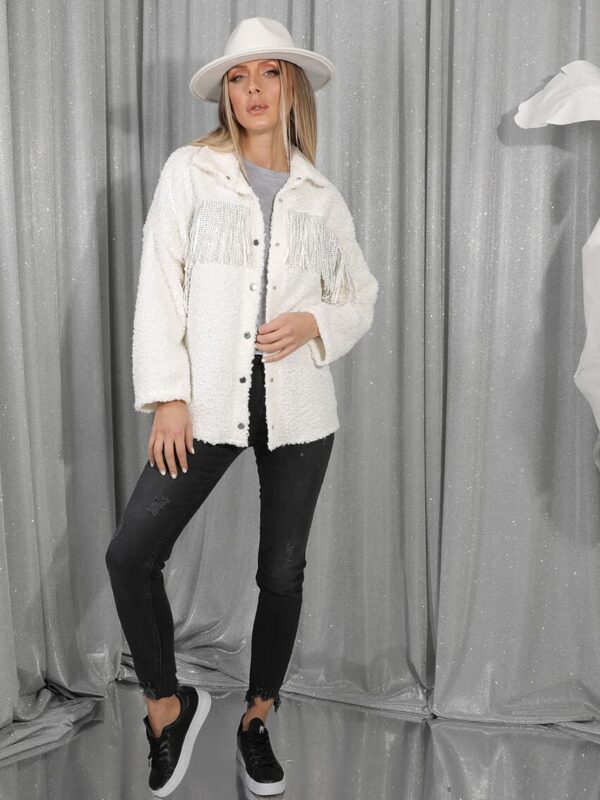 Beyaz Buklet Taş Püskül Ceket