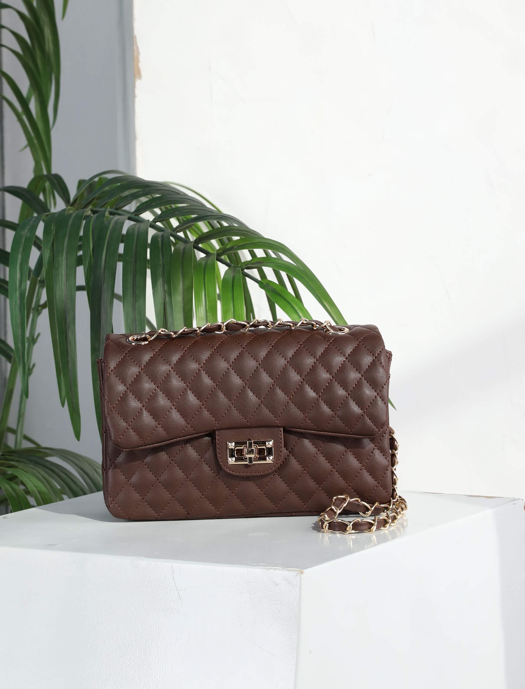 Çikolata Kahve Zincir Sap Kapitone Çanta