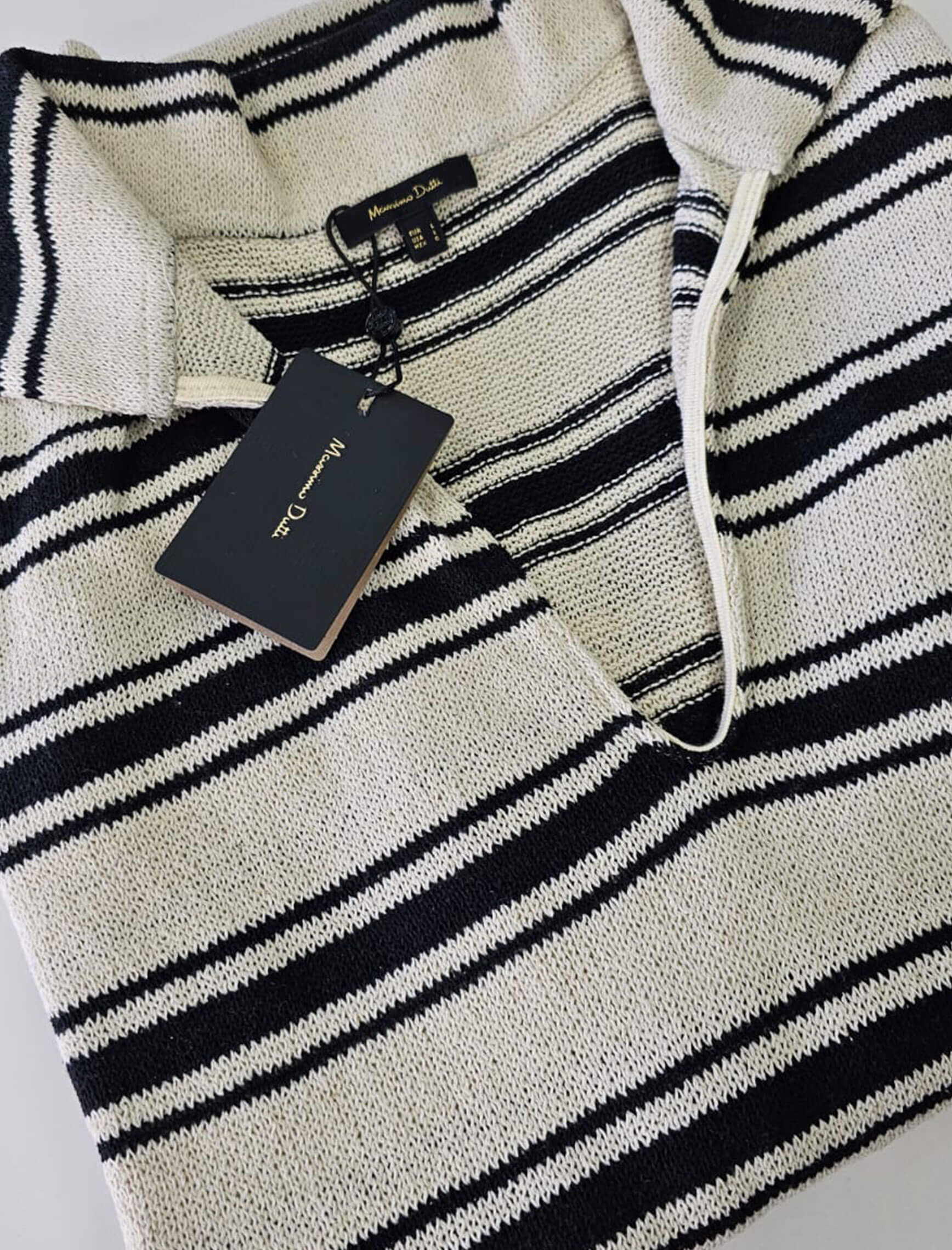Dokulu Siyah Çizgili Polo Yaka Elbise