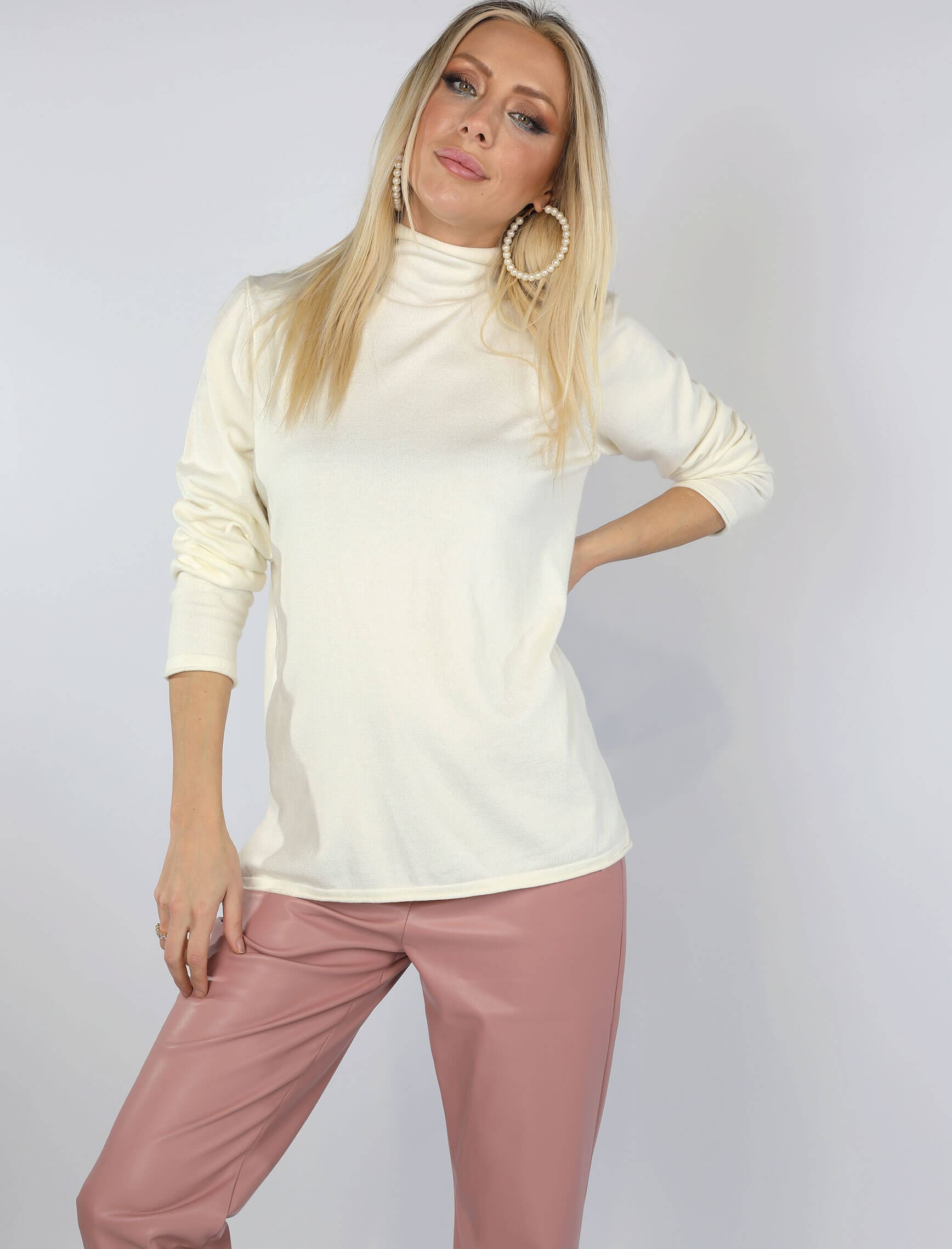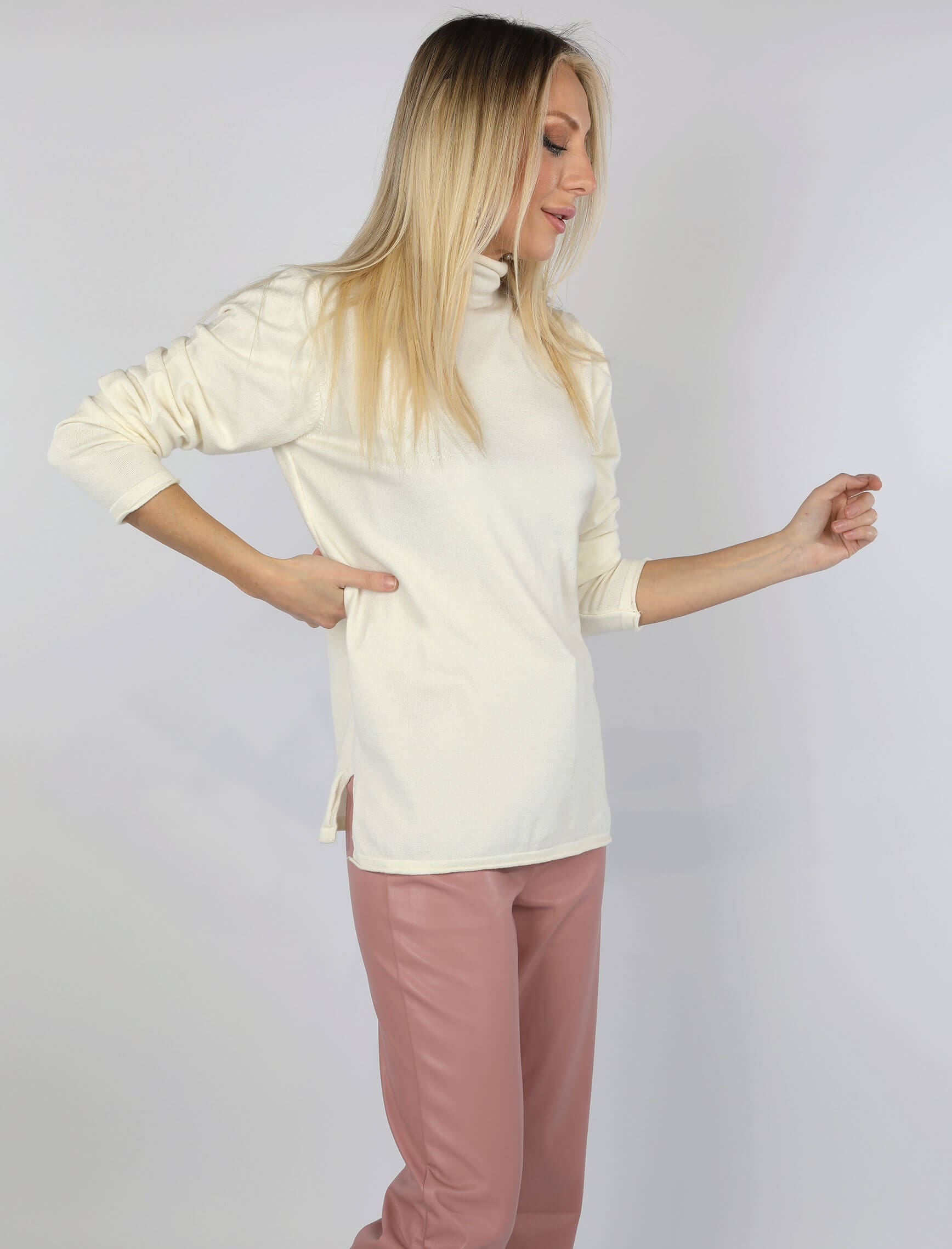 Ekru Boğazlı Korspan Triko