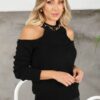 Ekru Omuz Dekolte Gold Zincir Detay Triko