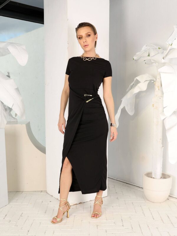 Yeşil Kolsuz Zincir Yırtmaç Elbise
