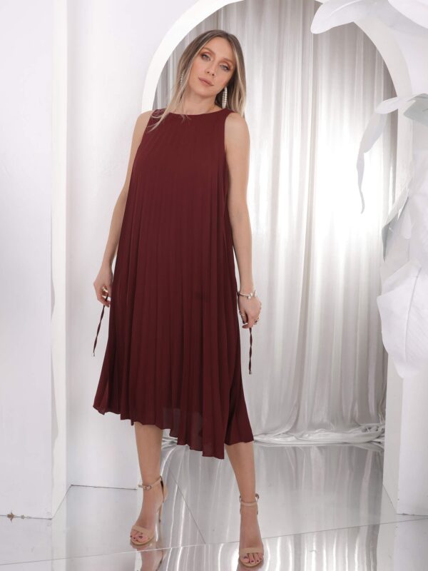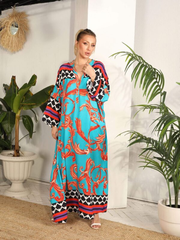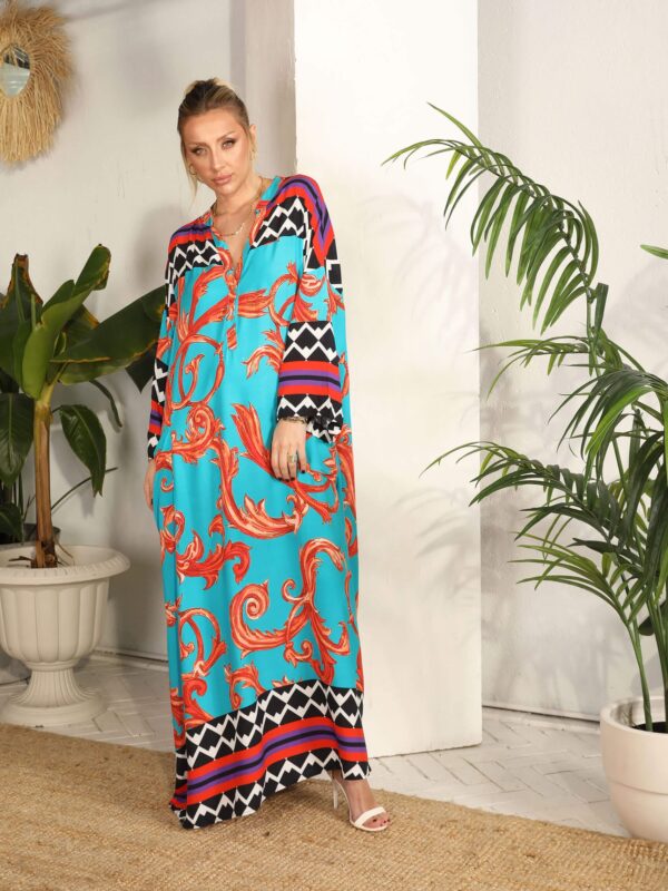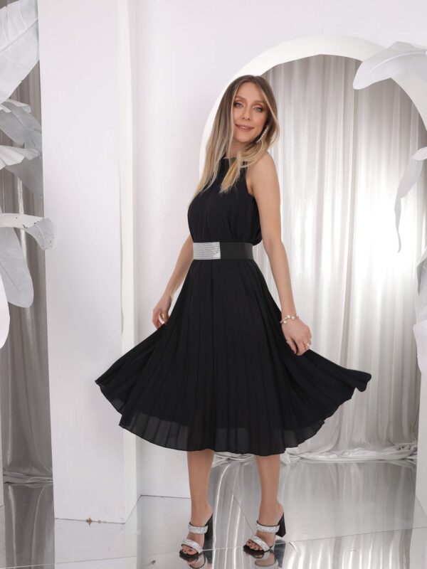 Mavi Halter Yaka Yırtmaçlı Triko Elbise