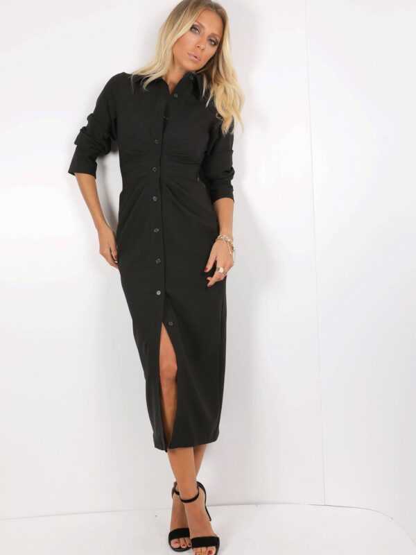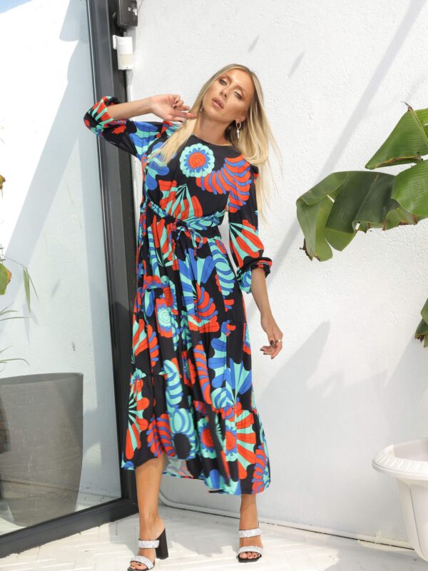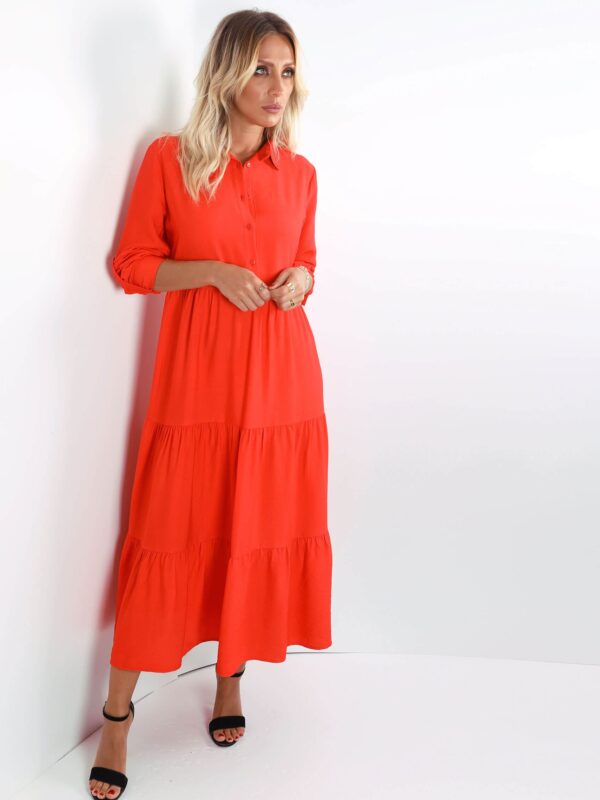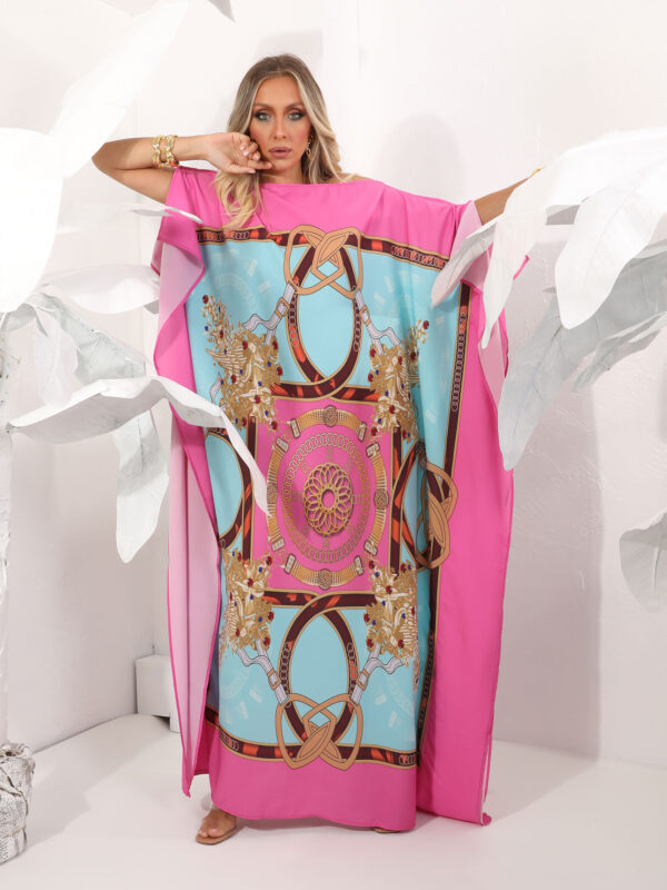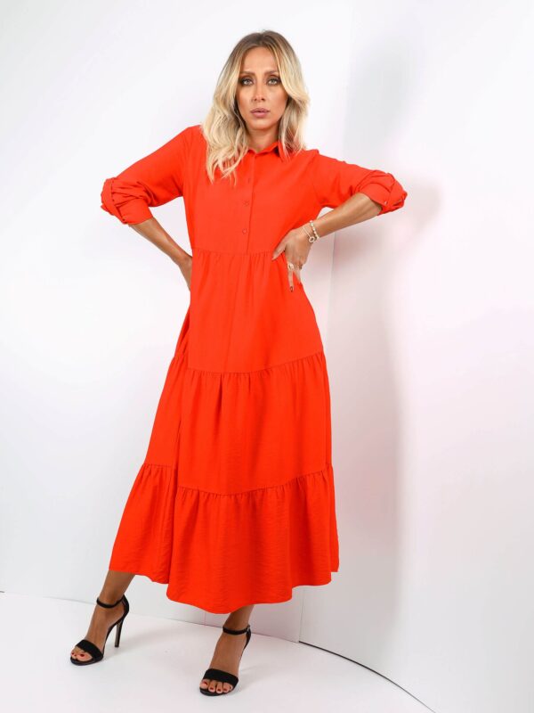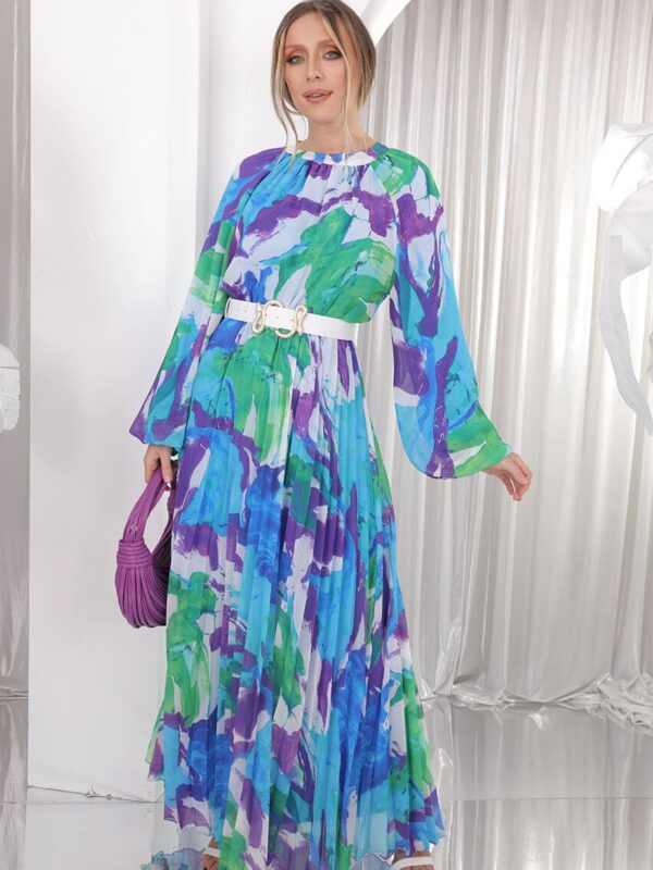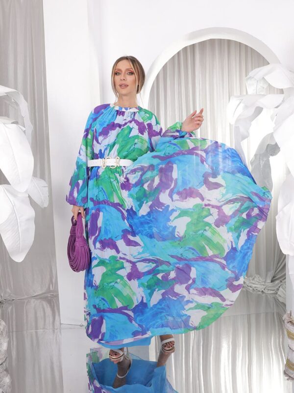 Fuşya Sırt Dekolte Lastik Bel Elbise