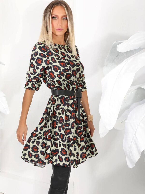 Siyah Camel Zebradesen Madonna Yaka Triko Elbise
