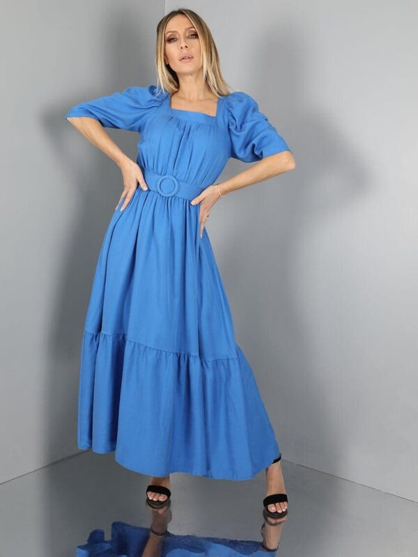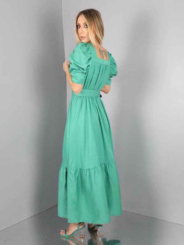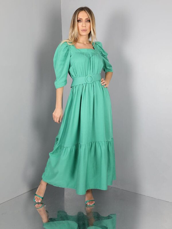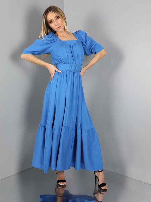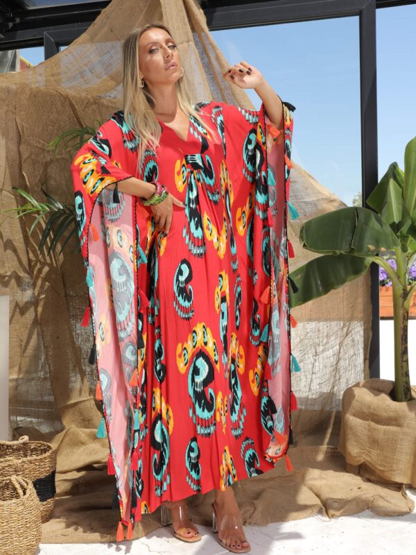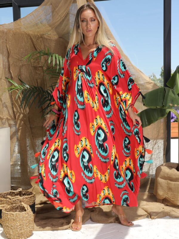 Kırmızı Turkuaz Nazar Püsküllü V Yaka Elbise