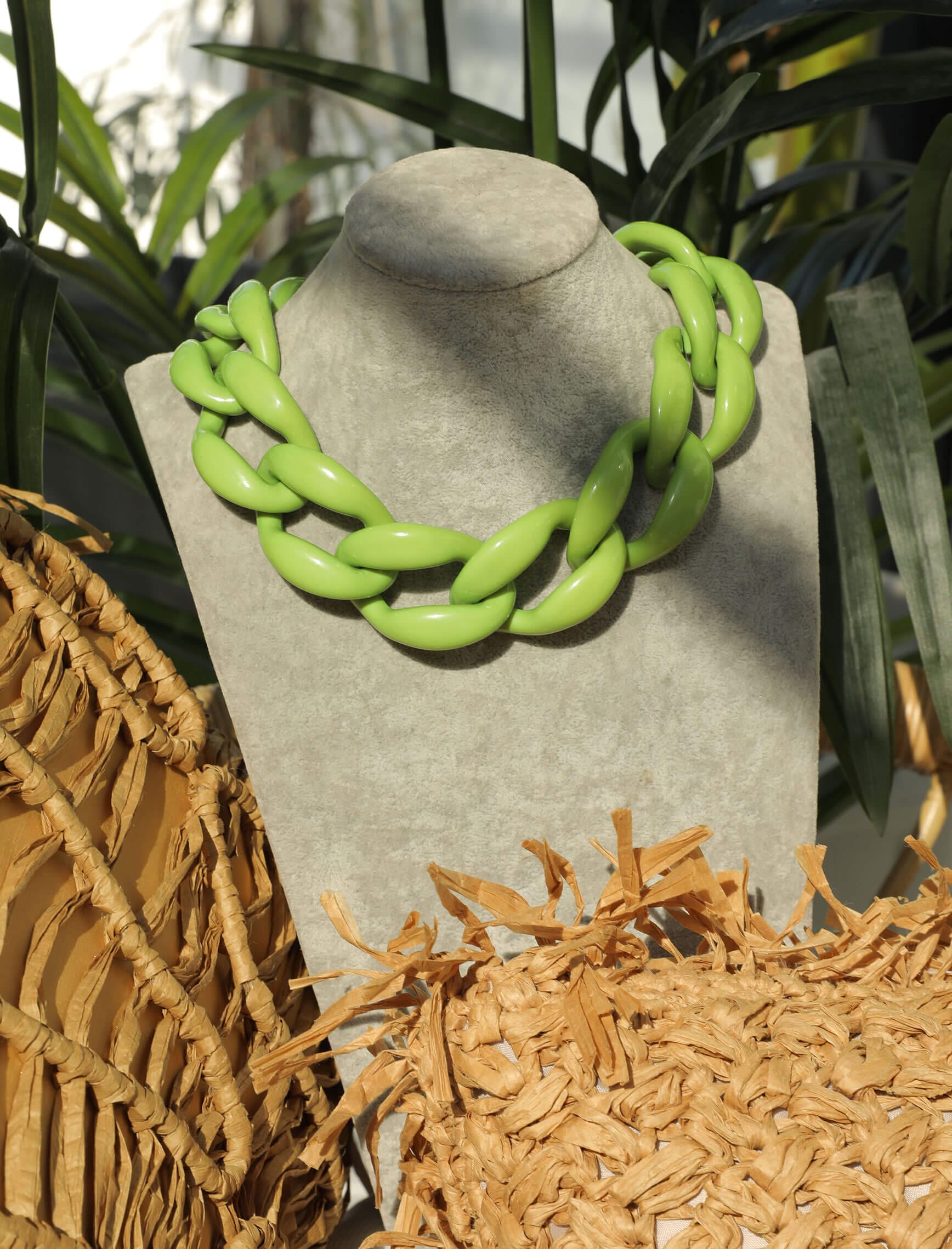 Fıstık Yeşili Dolgulu Zincir Kolye