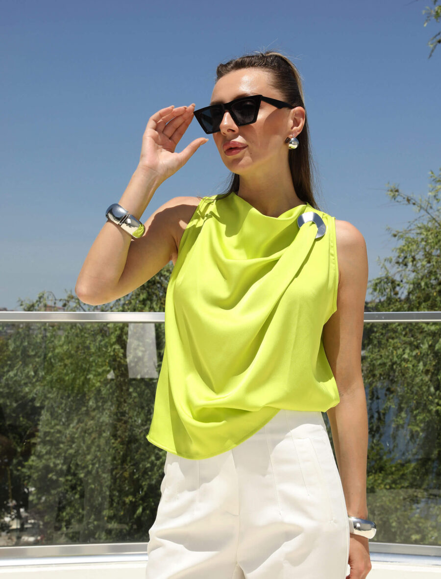 Fıstık Yeşili Gümüş Detay Mira Bluz