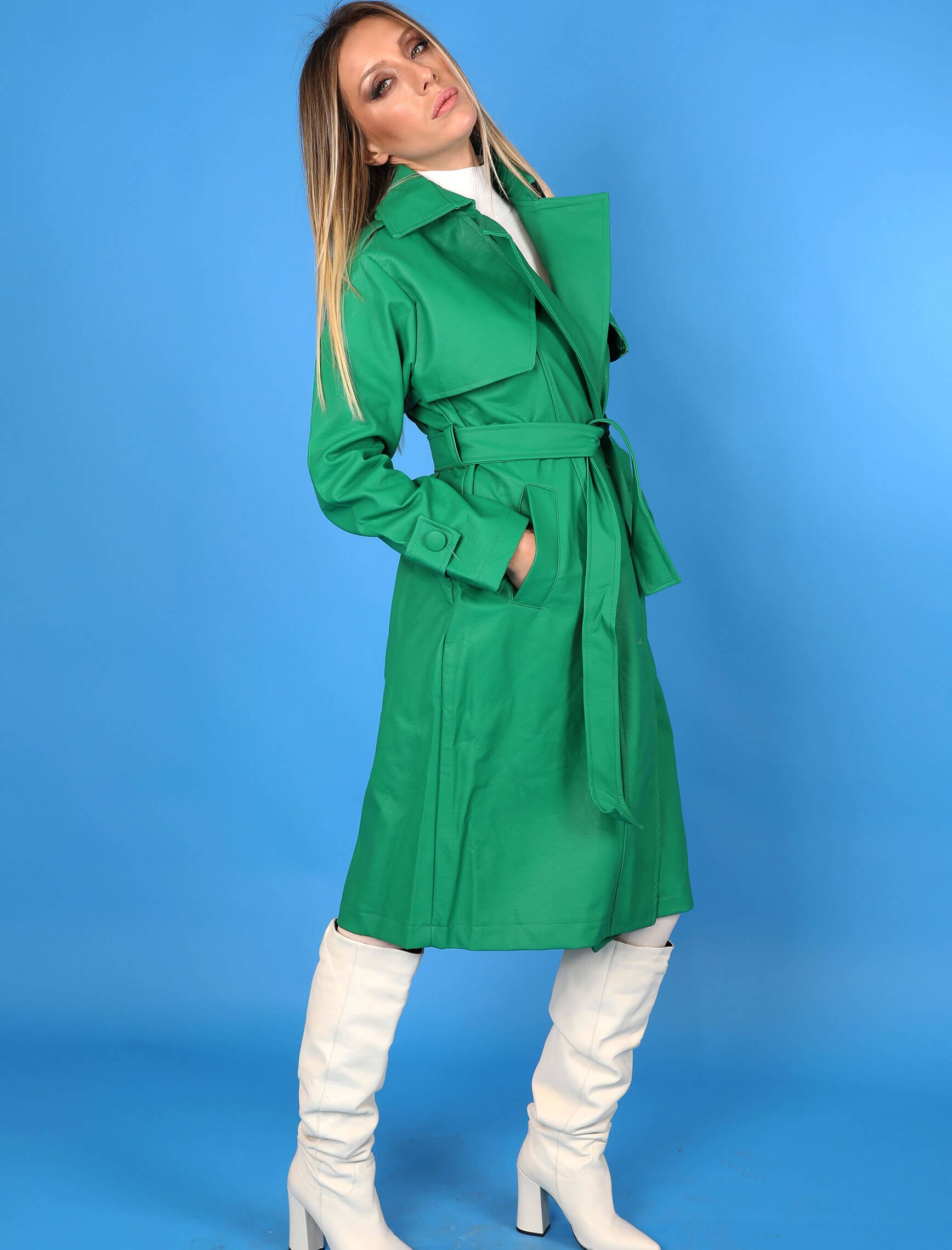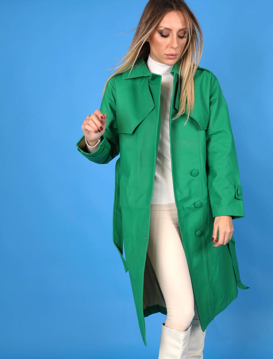 Forest Yeşil Deri Milano Trench