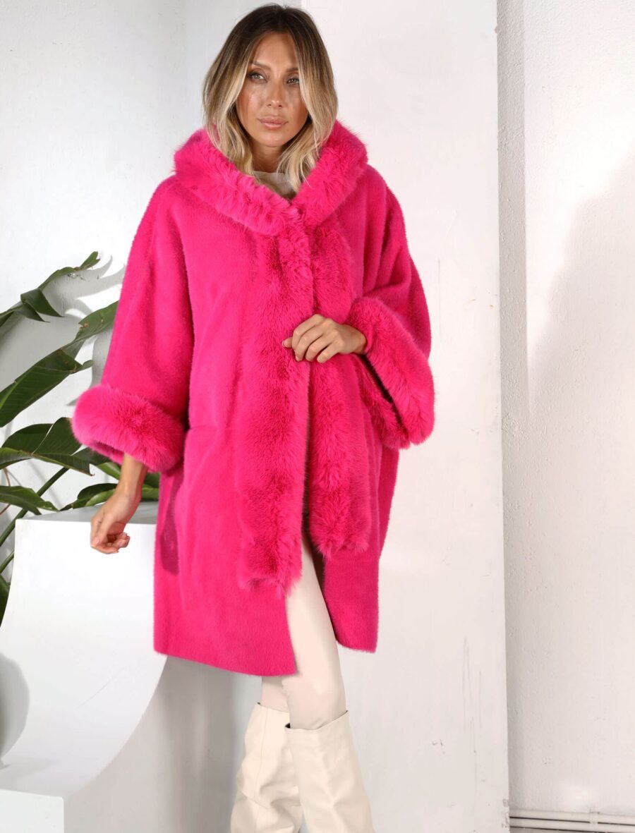 Fuşya Kapüşonlu Angora Kaban