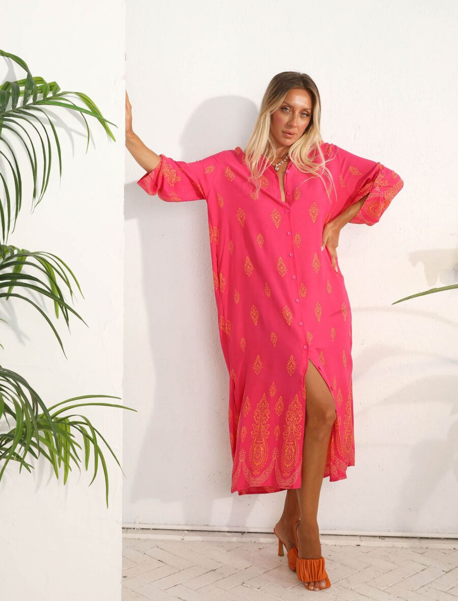 Fuşya Turuncu Hindistan Gömlek Elbise