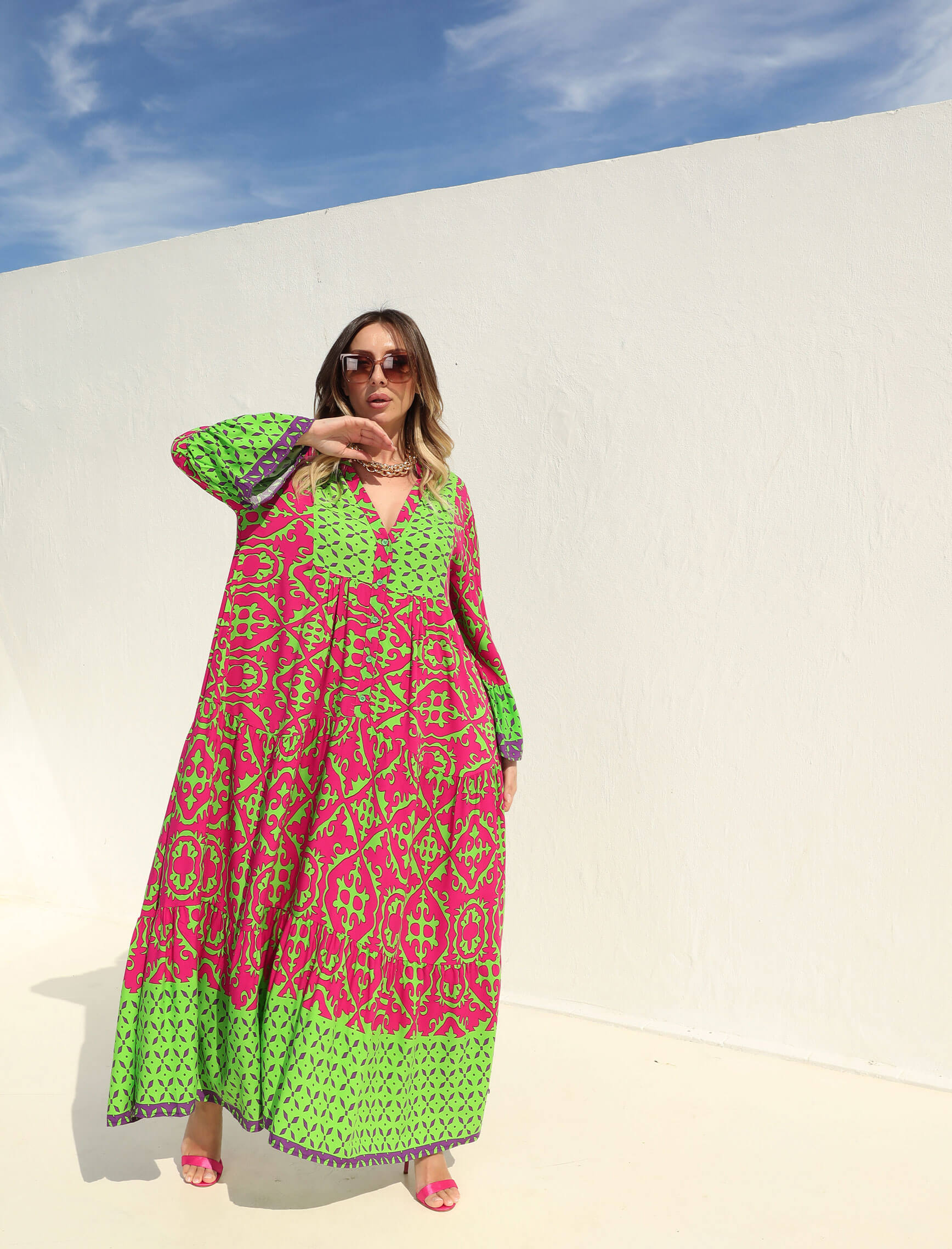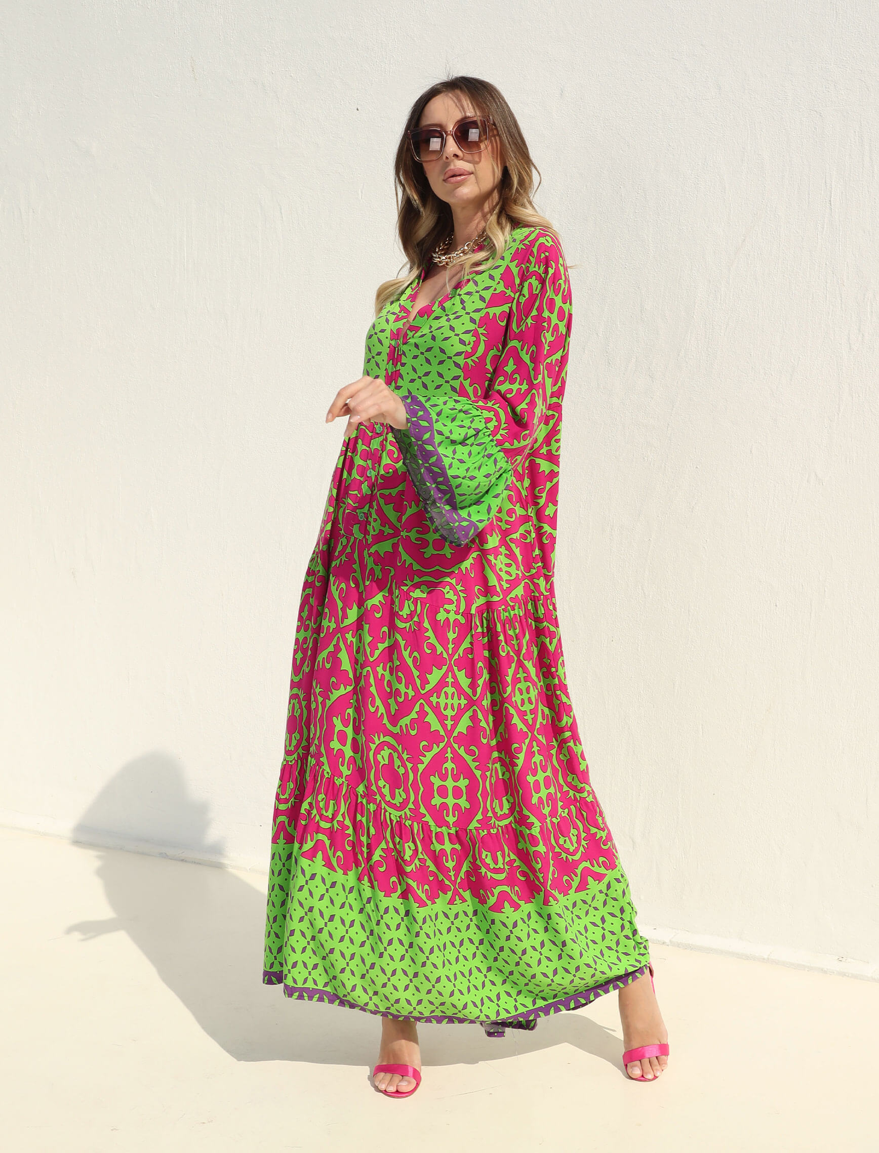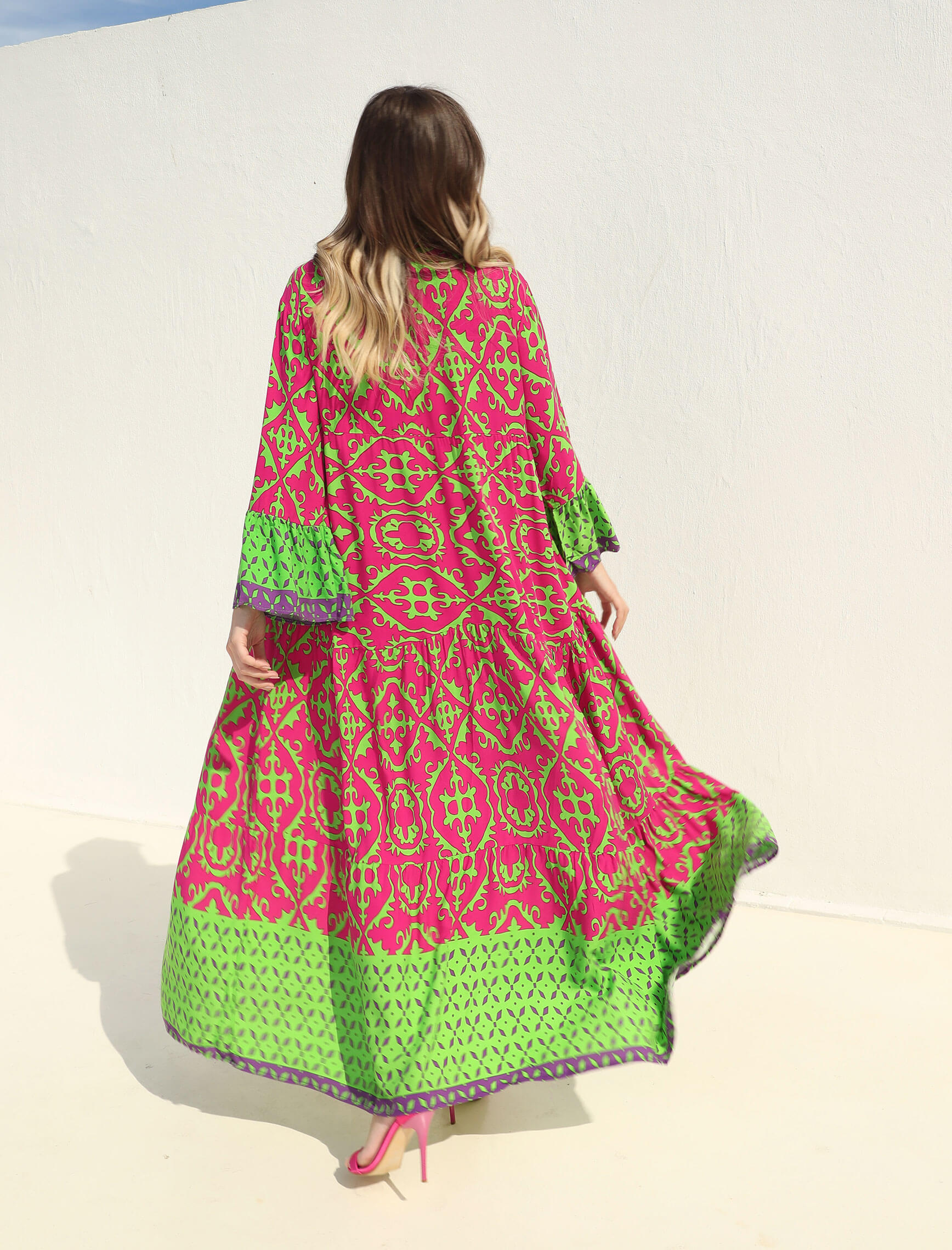 Fuşya Yeşil Verde Elbise