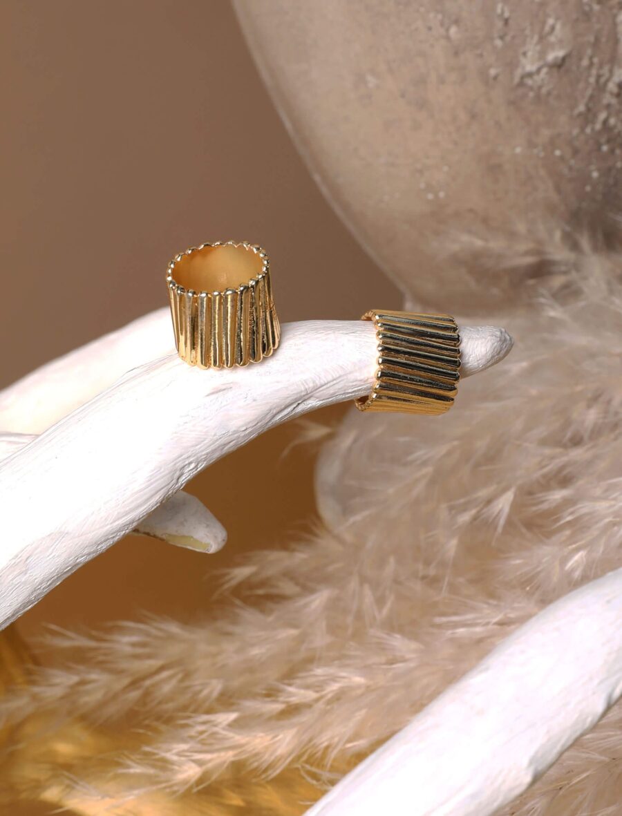 Gold Blok Çizgi Yüzük