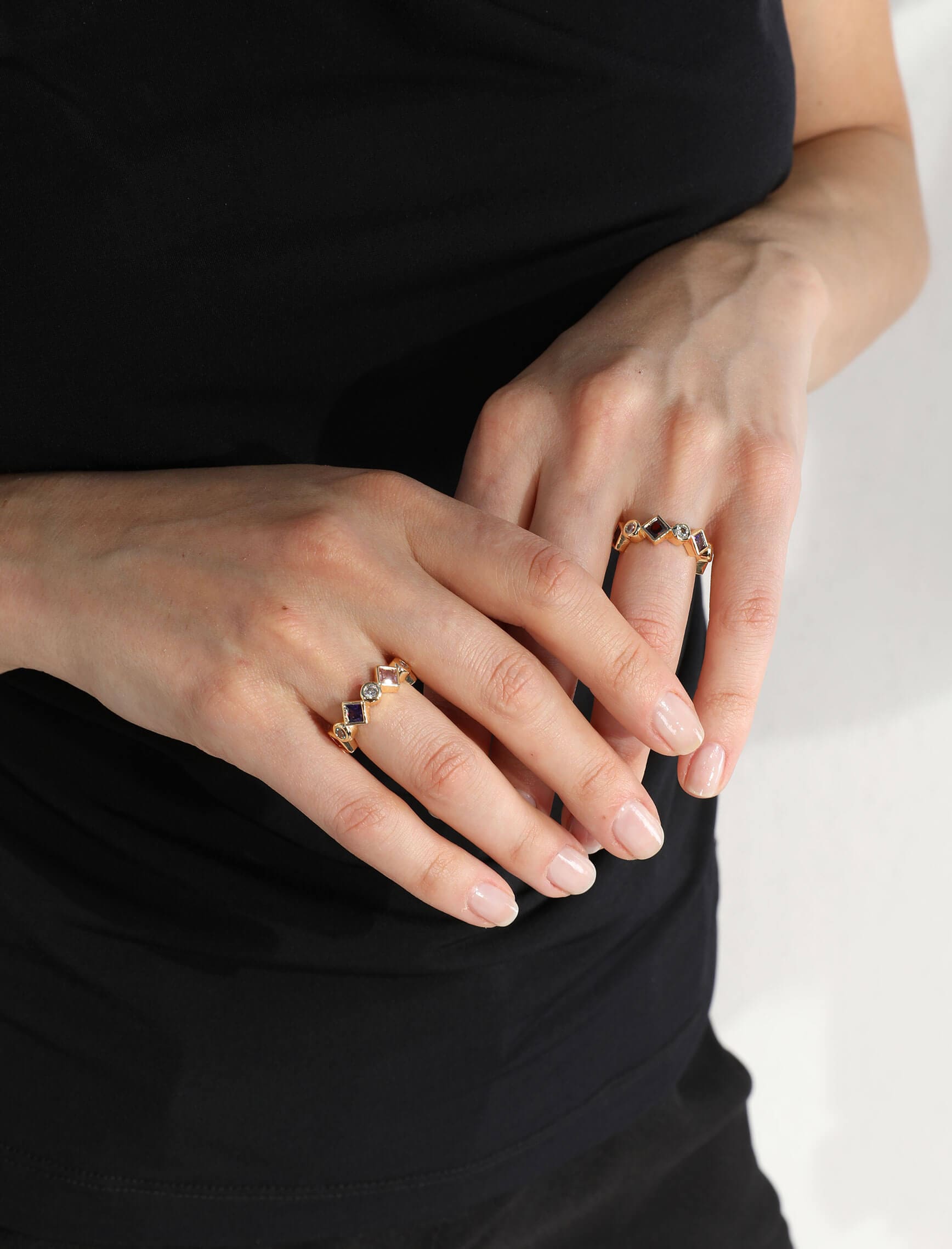 Gold Mor Kare Tam Tur Taş Yüzük