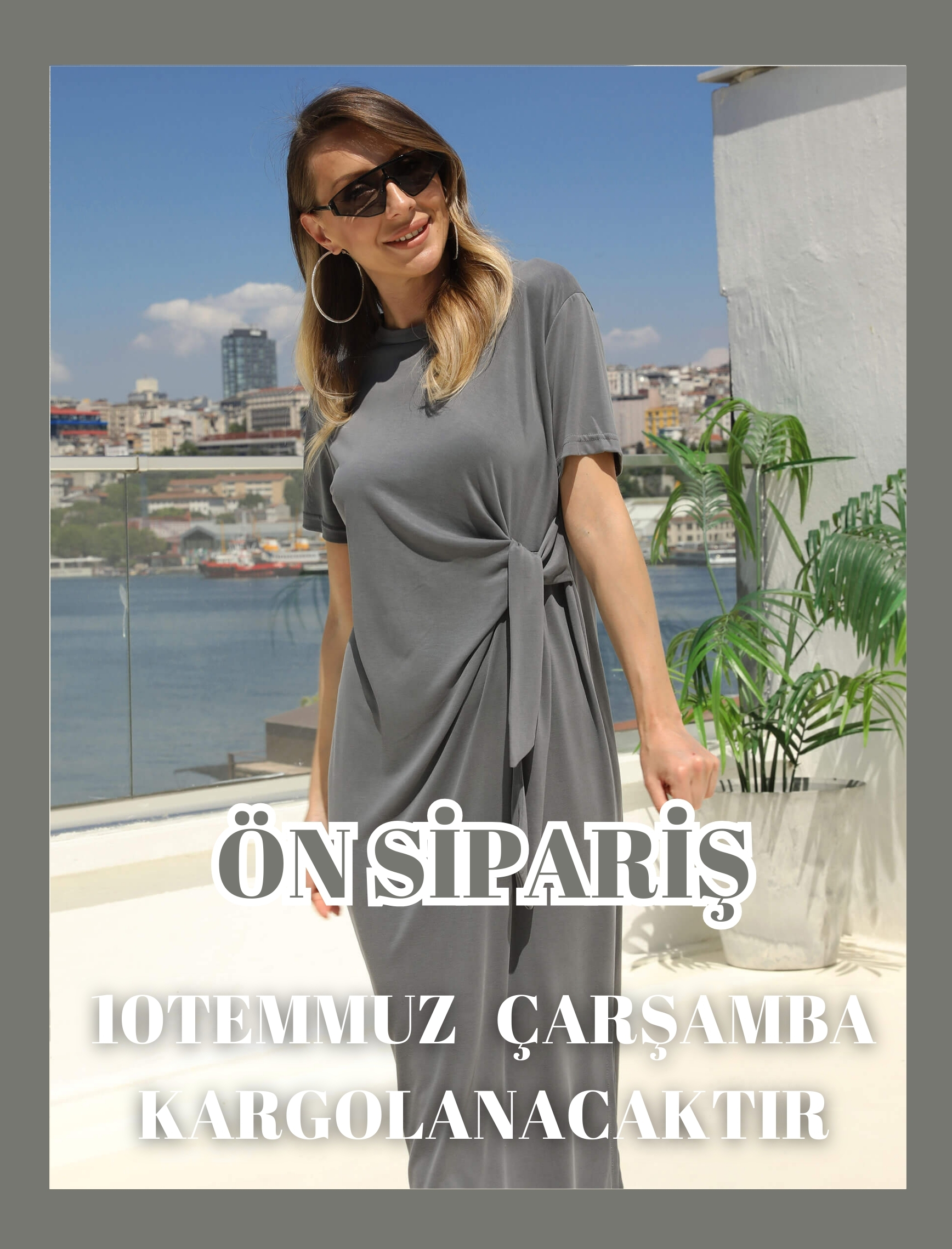 Gri Bağlama Oys Elbise