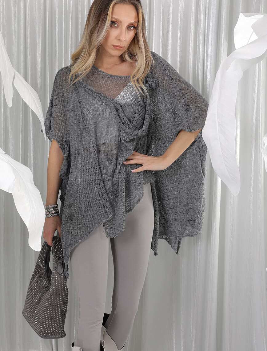Gri Drape Tokalı Tayt Pantolon