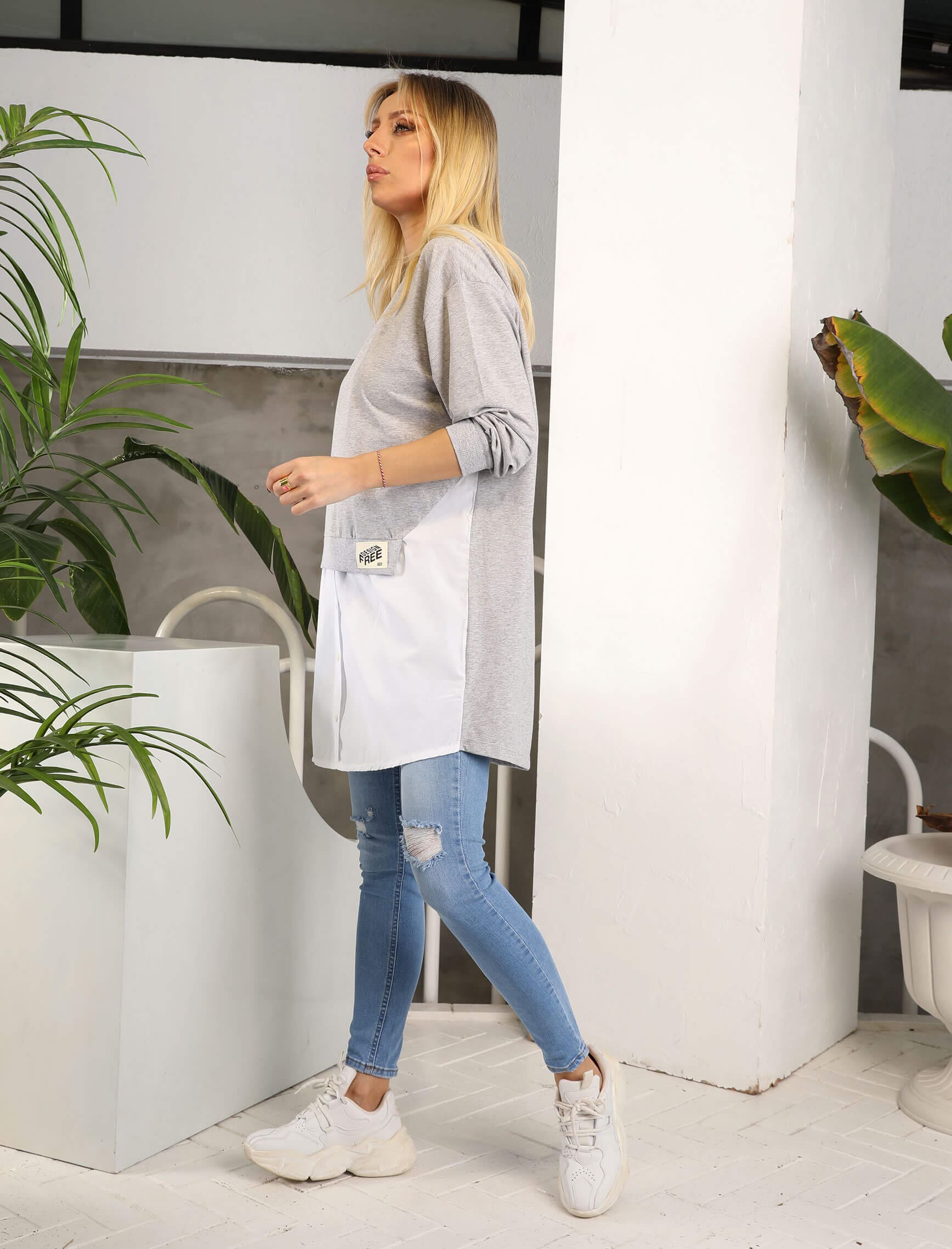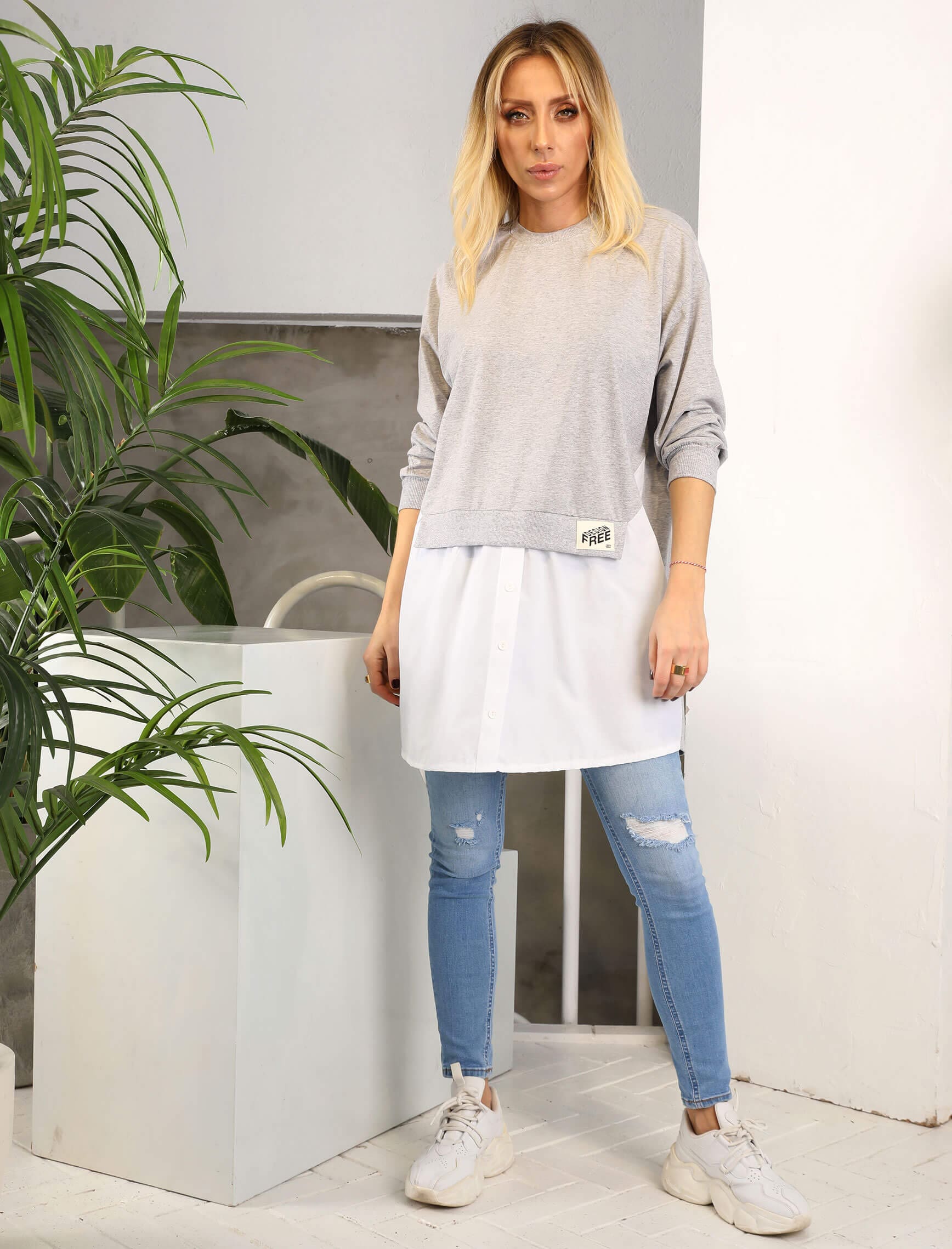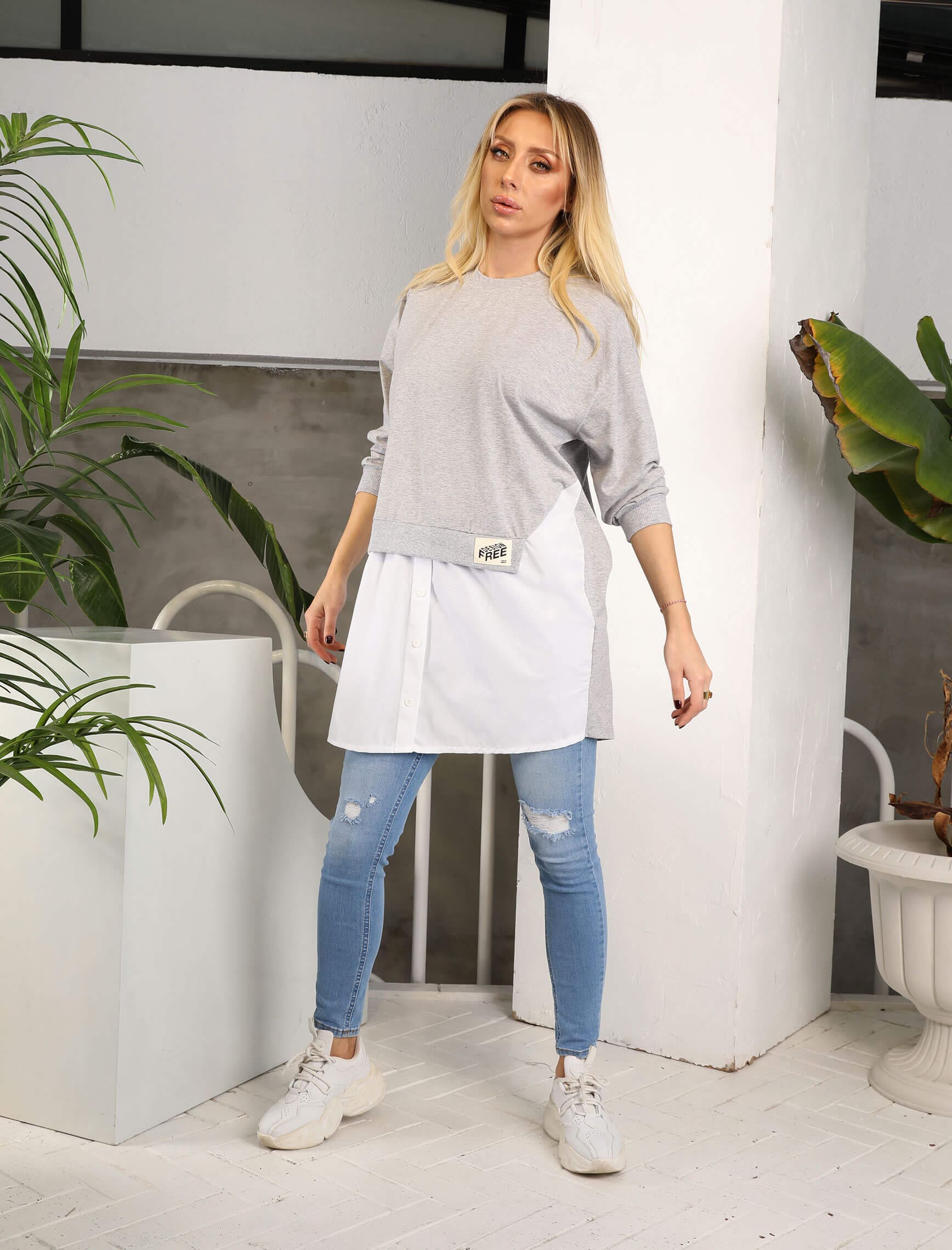 Gri Poplin Detay Bruno Sweat