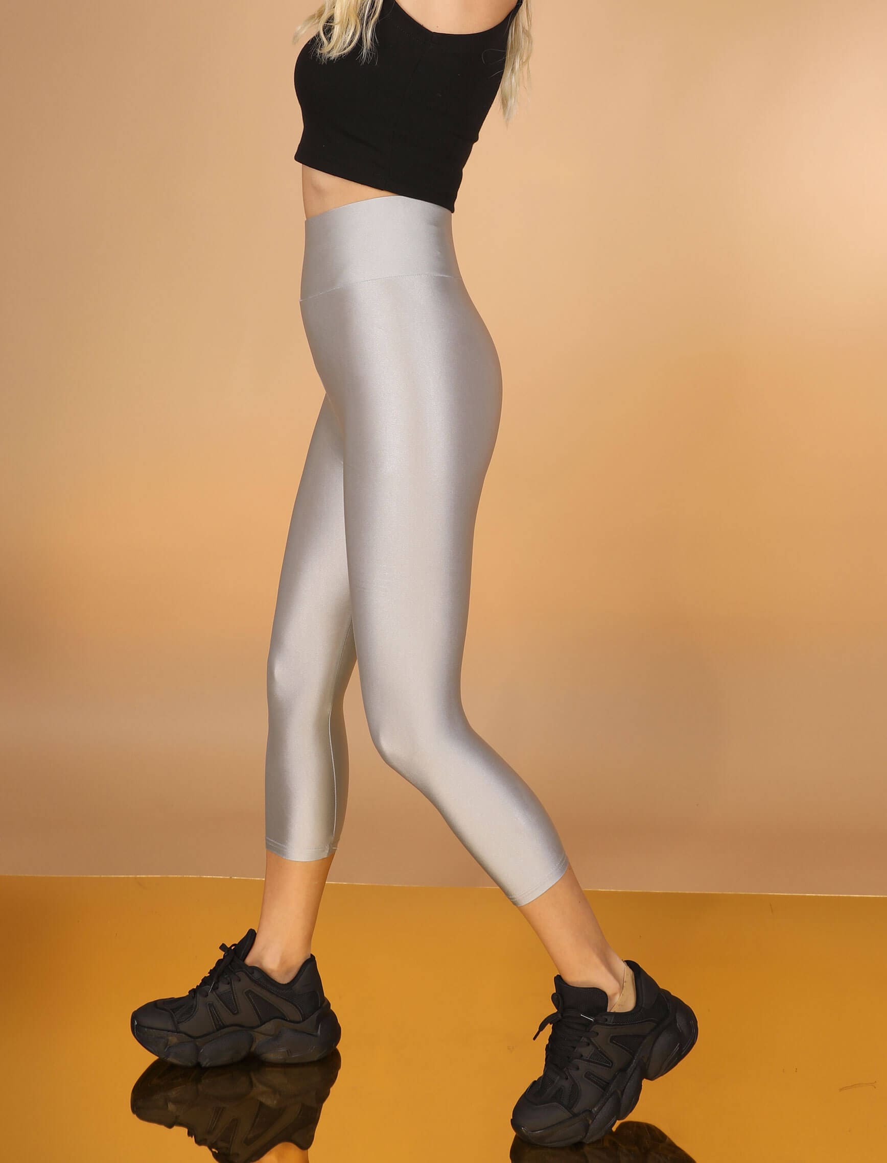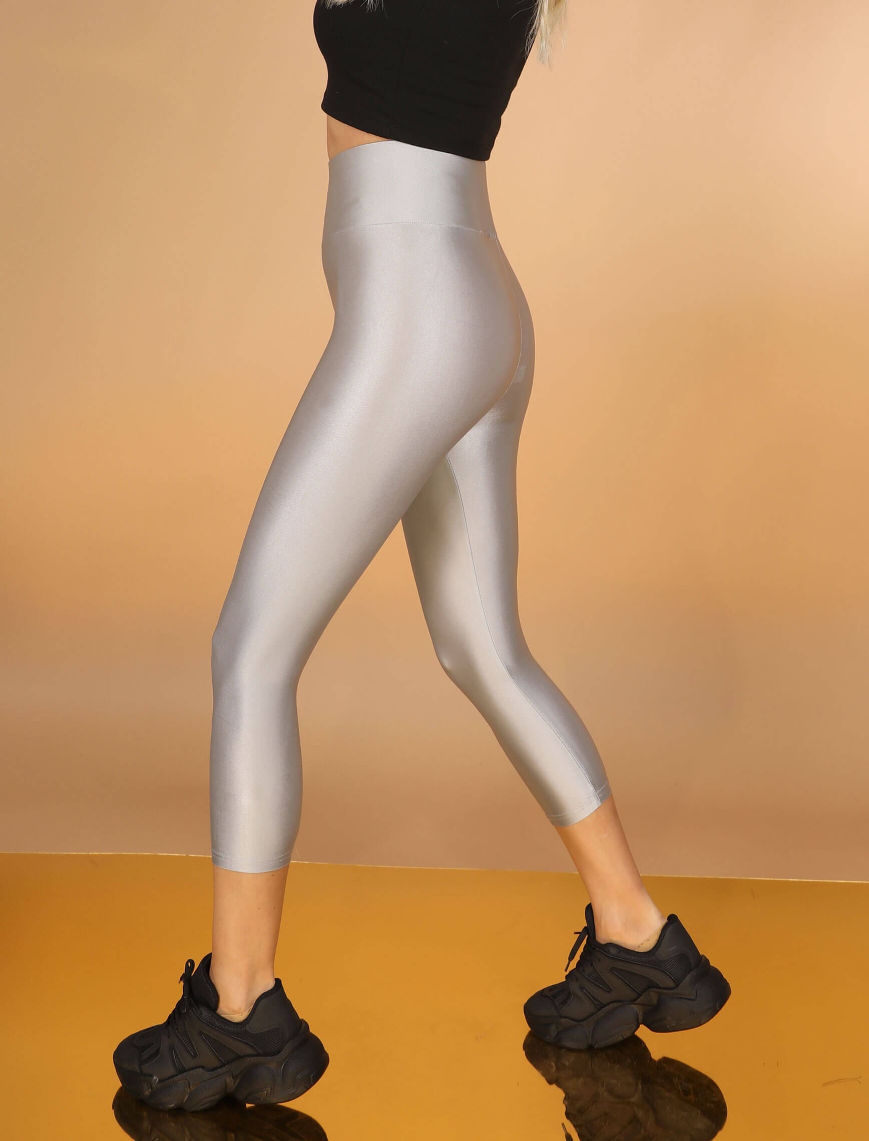 Gümüş Yüksek Bel Kısa Disko Tayt