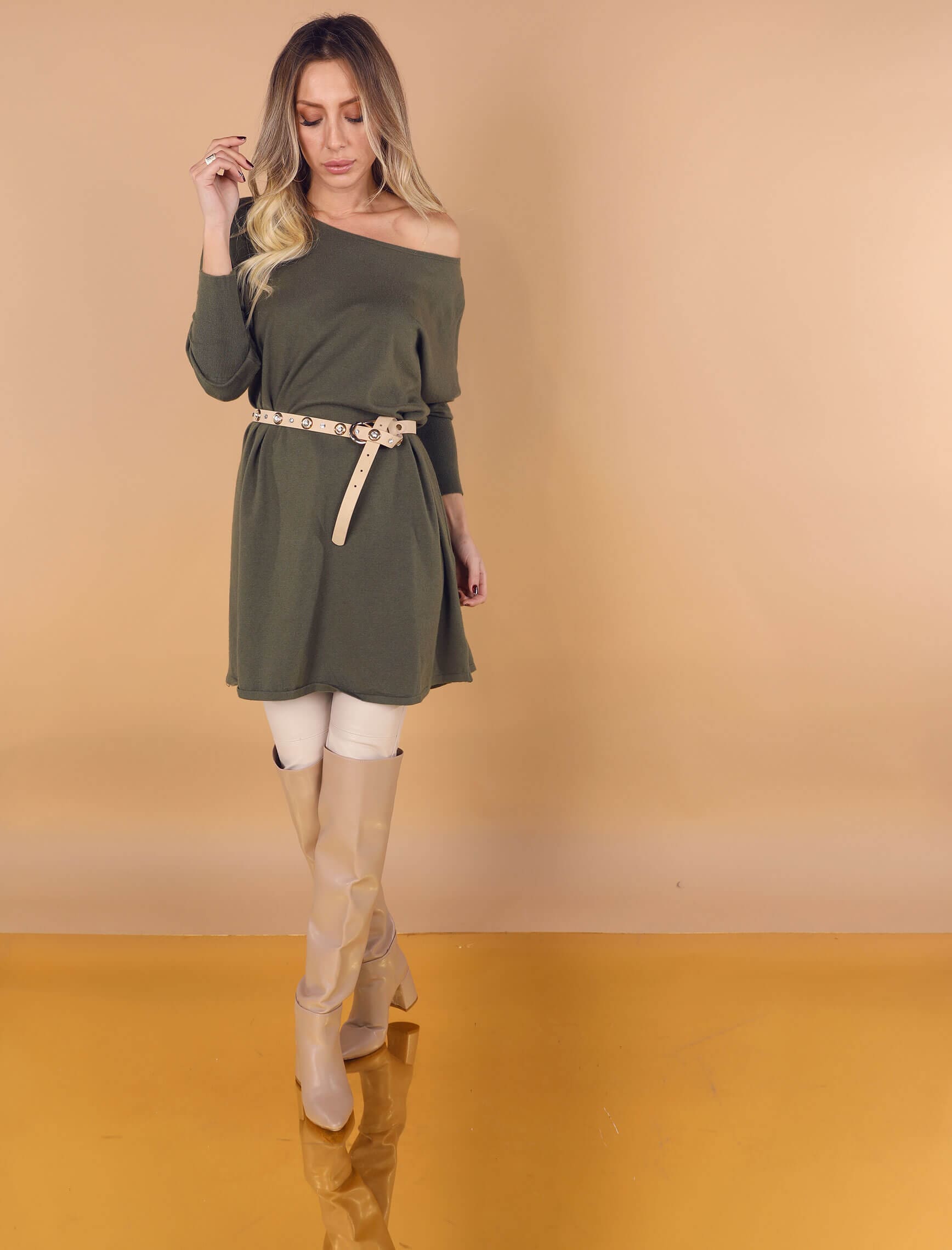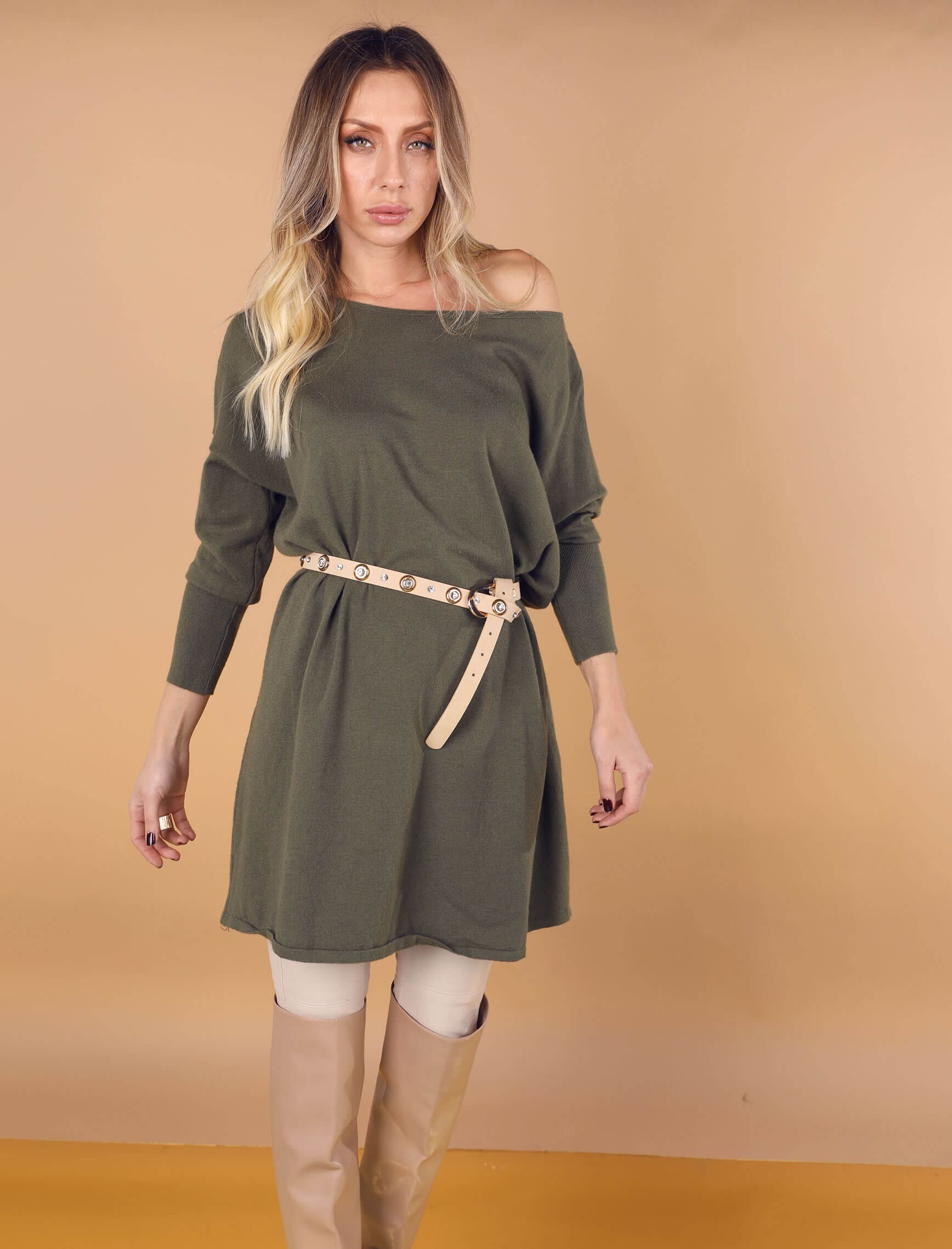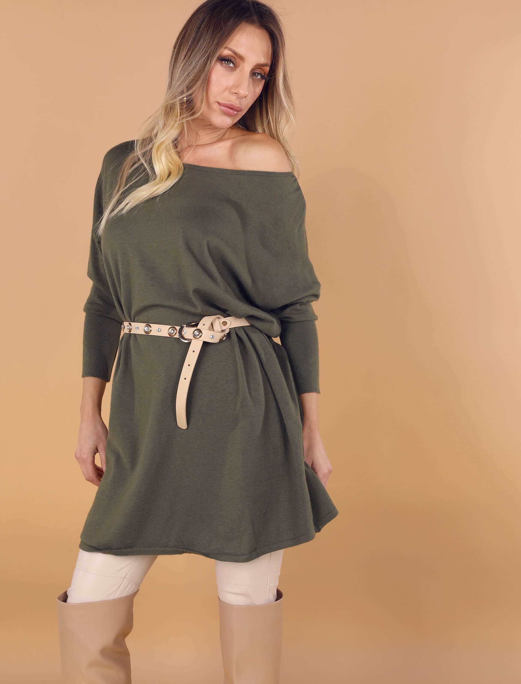 Haki Kayık Yaka Triko Tunik
