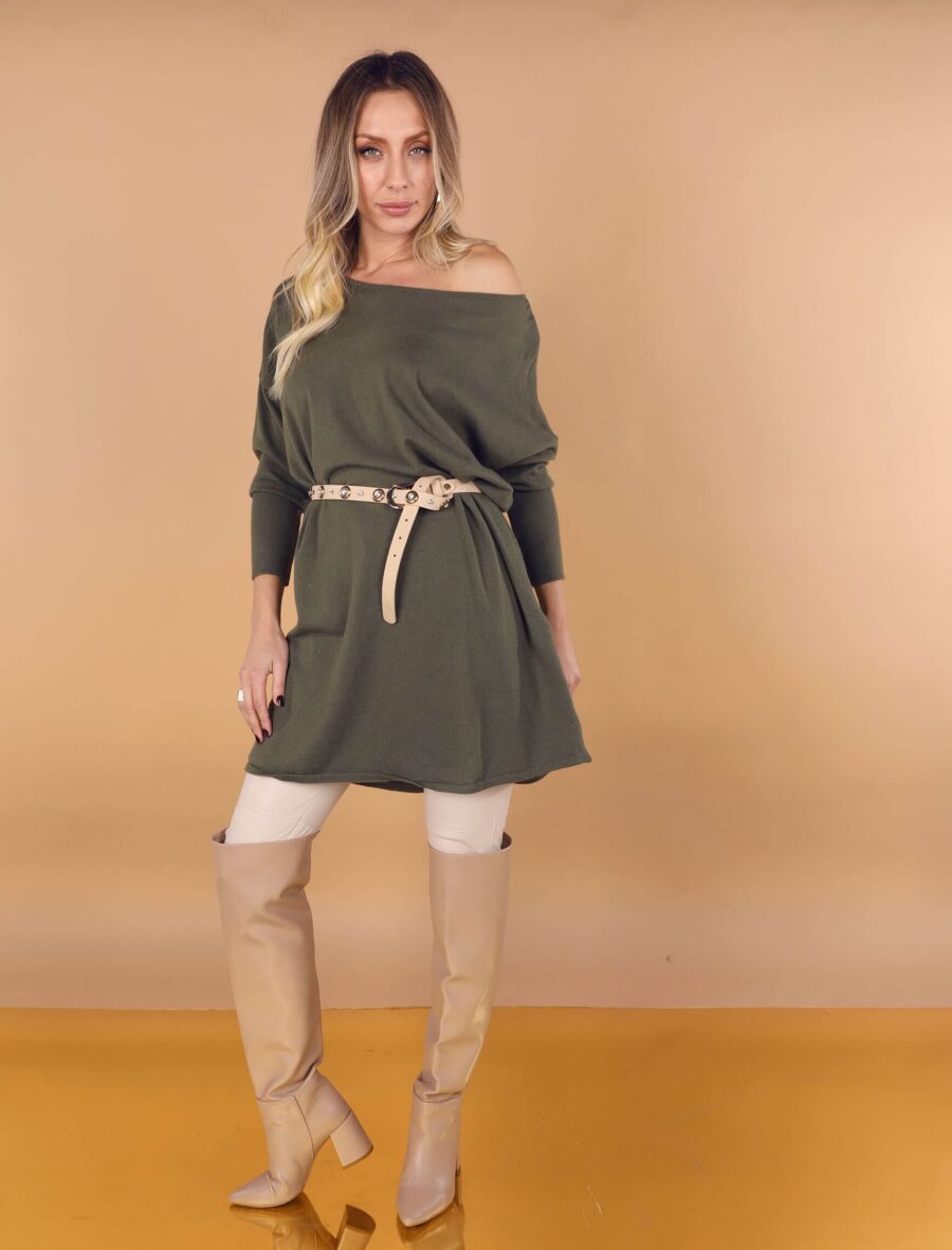 Haki Kayık Yaka Triko Tunik