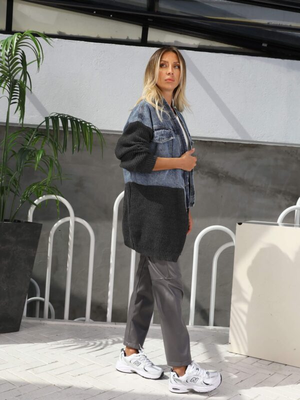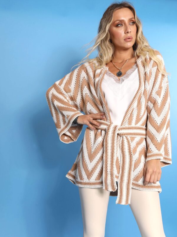 Taş Vizon Zikzak Örgü Kimono Hırka