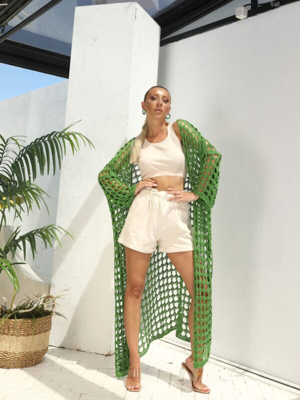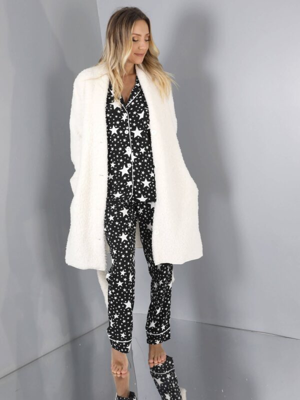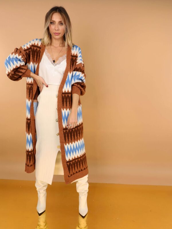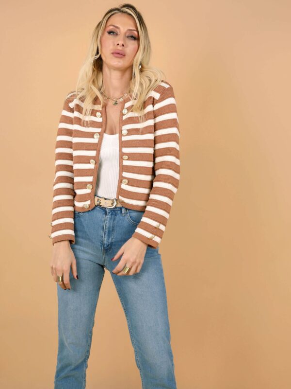 Camelrengi Beyaz Çizgili Gold Düğme Hırka