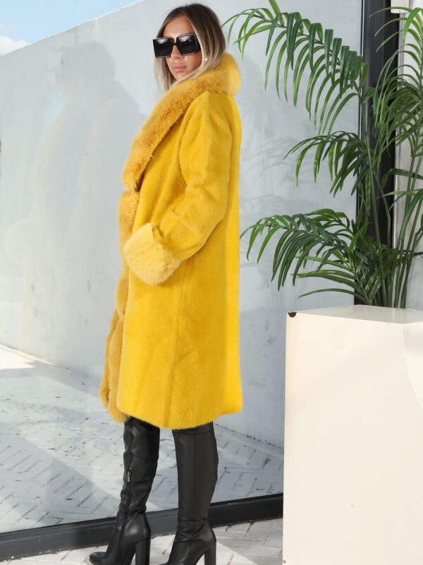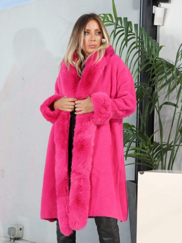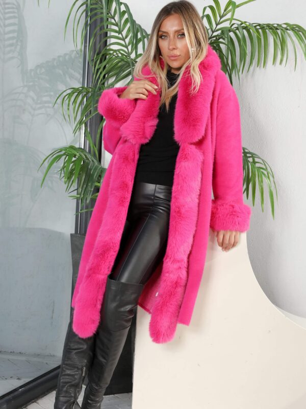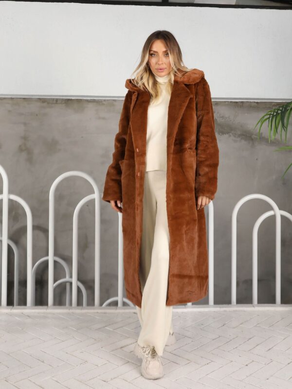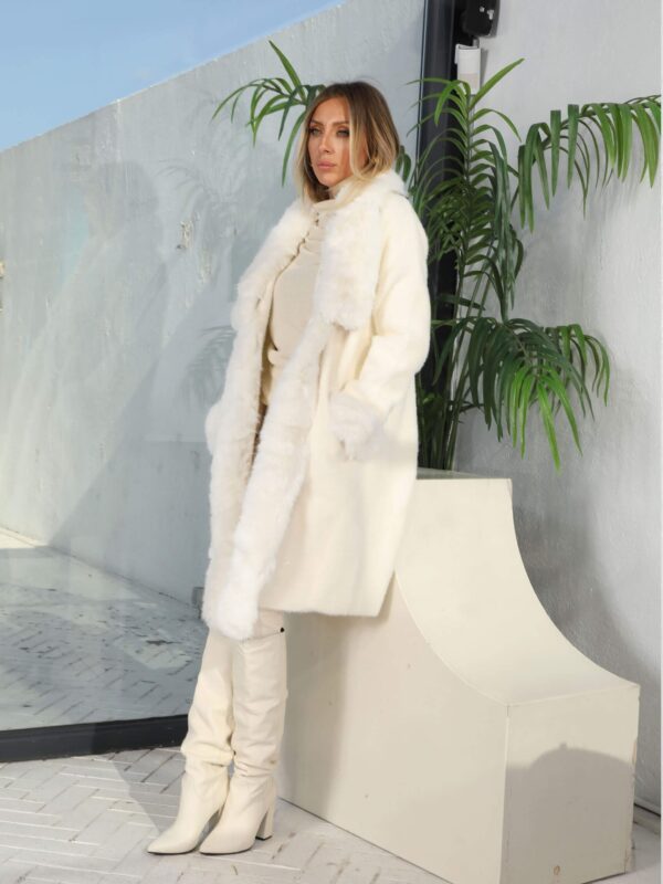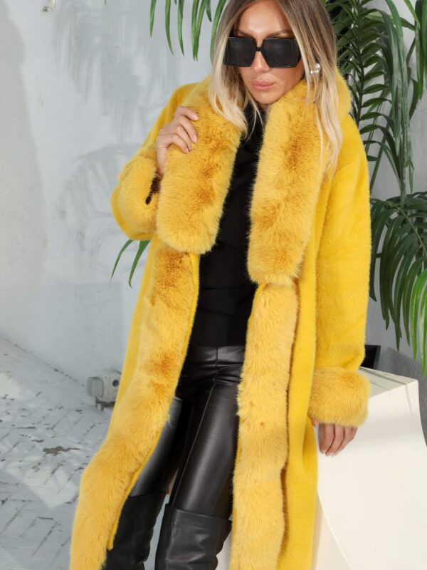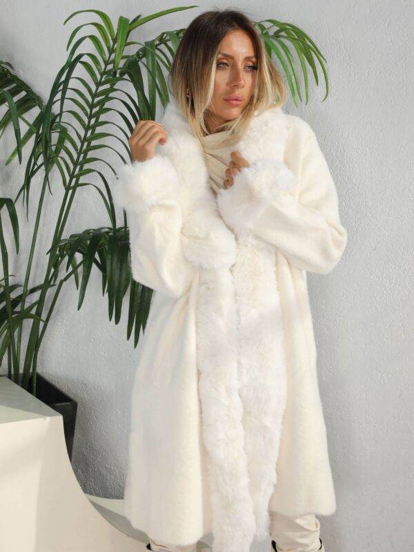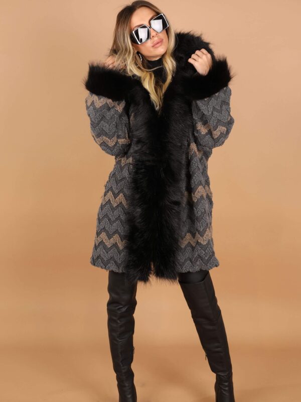Siyah Gri Çizgi Desen Kürklü Kaban