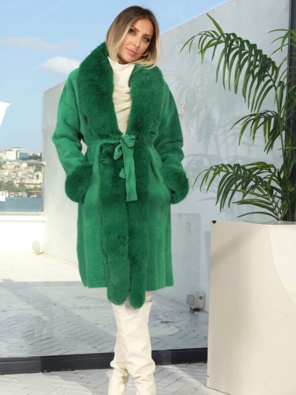 Fsıtık Yeşili Kapüşonlu Uzun Peluş