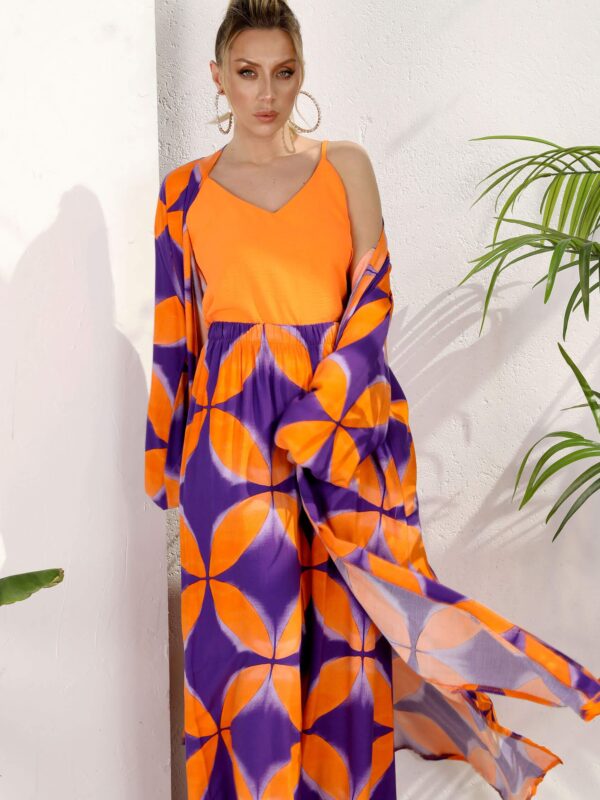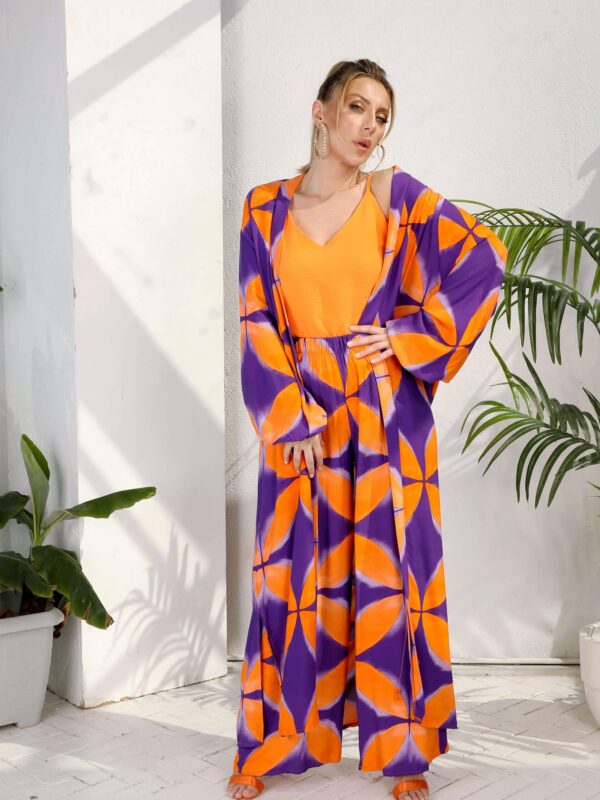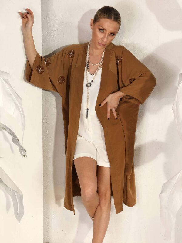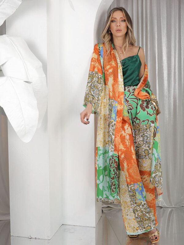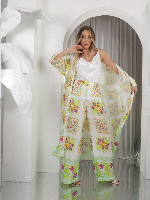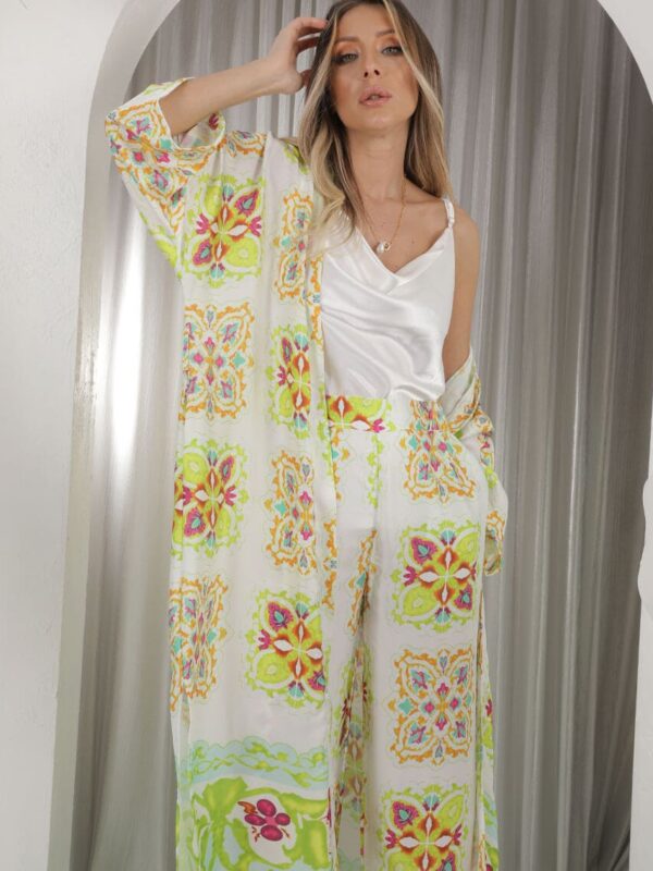 Yeşil Bej Dama Çini Desen Kimono Takım