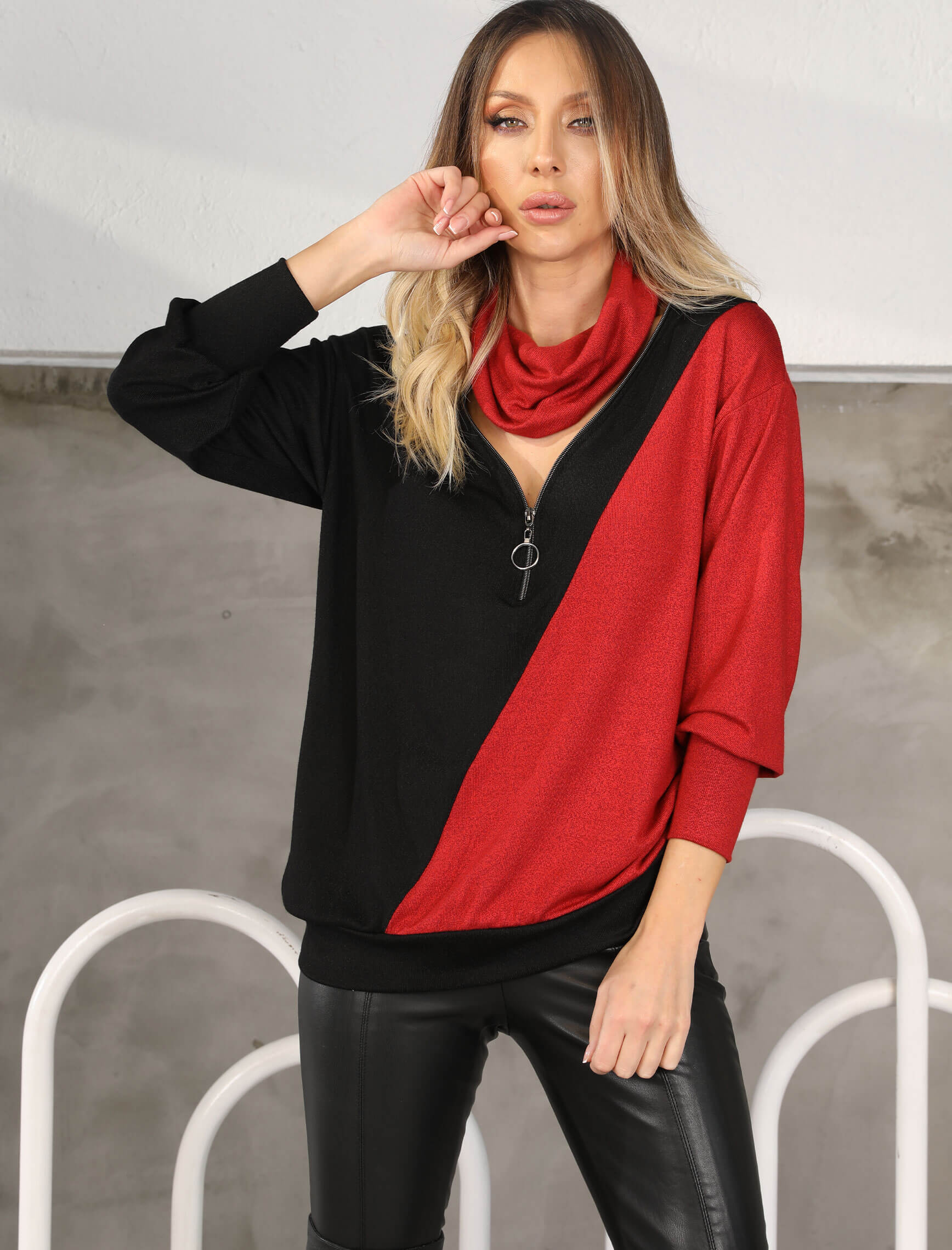Kırmızı Siyah Fermuar Konç Triko