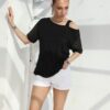 Kırmızı V Yaka Çift Transparan Şerit Tshirt