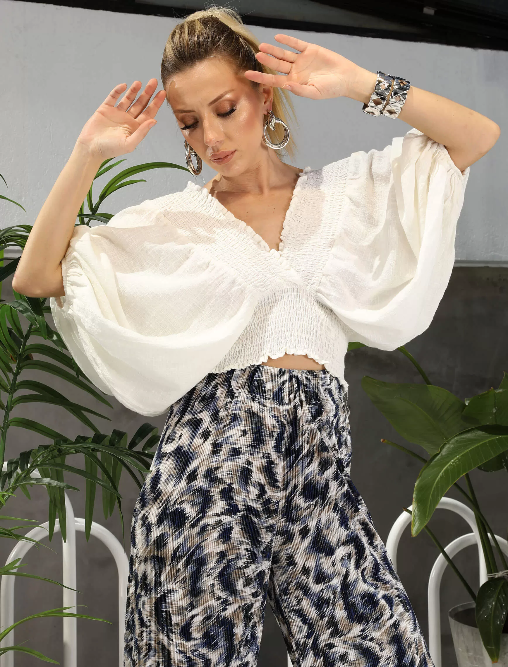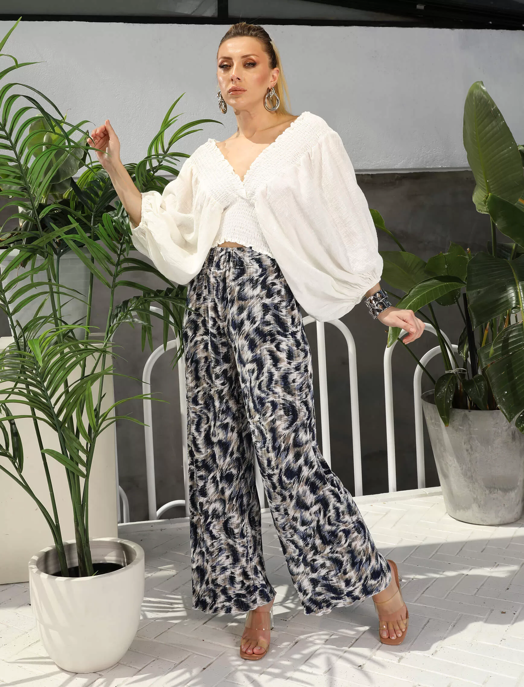 Lacivert Ekru Krinkıl Pantolon