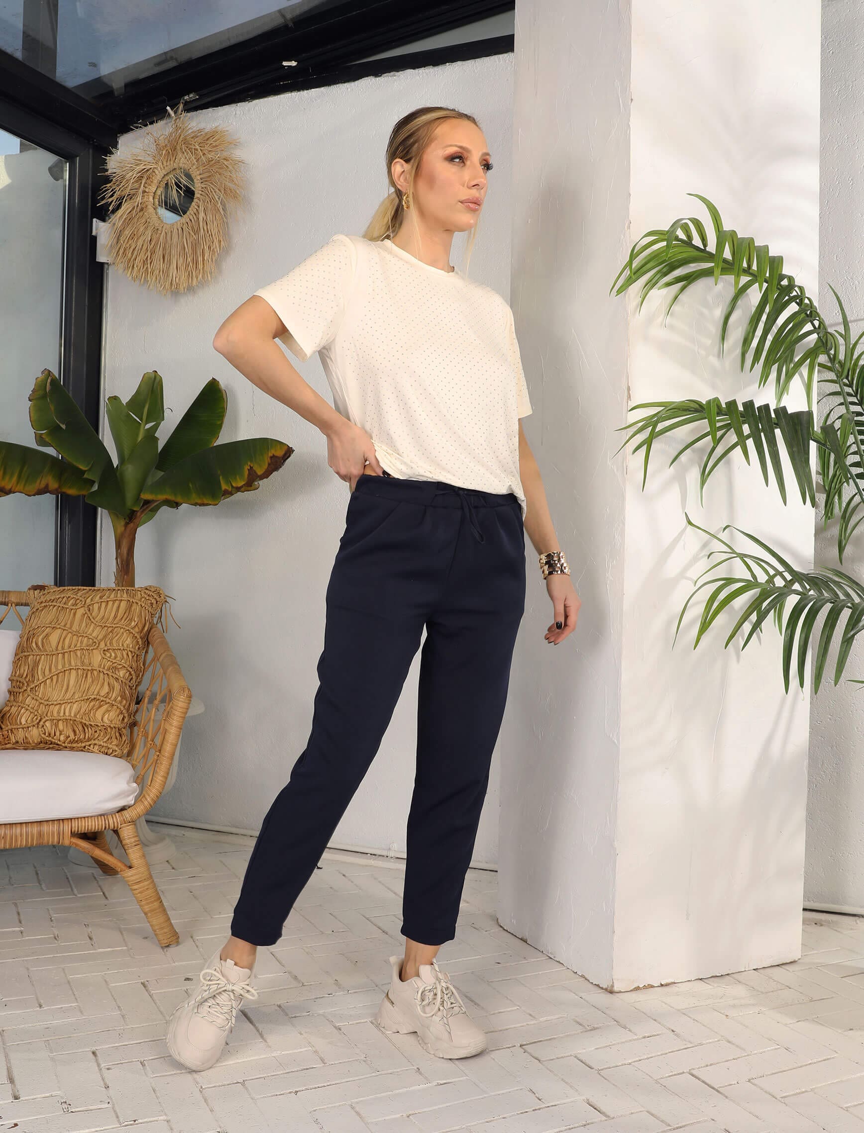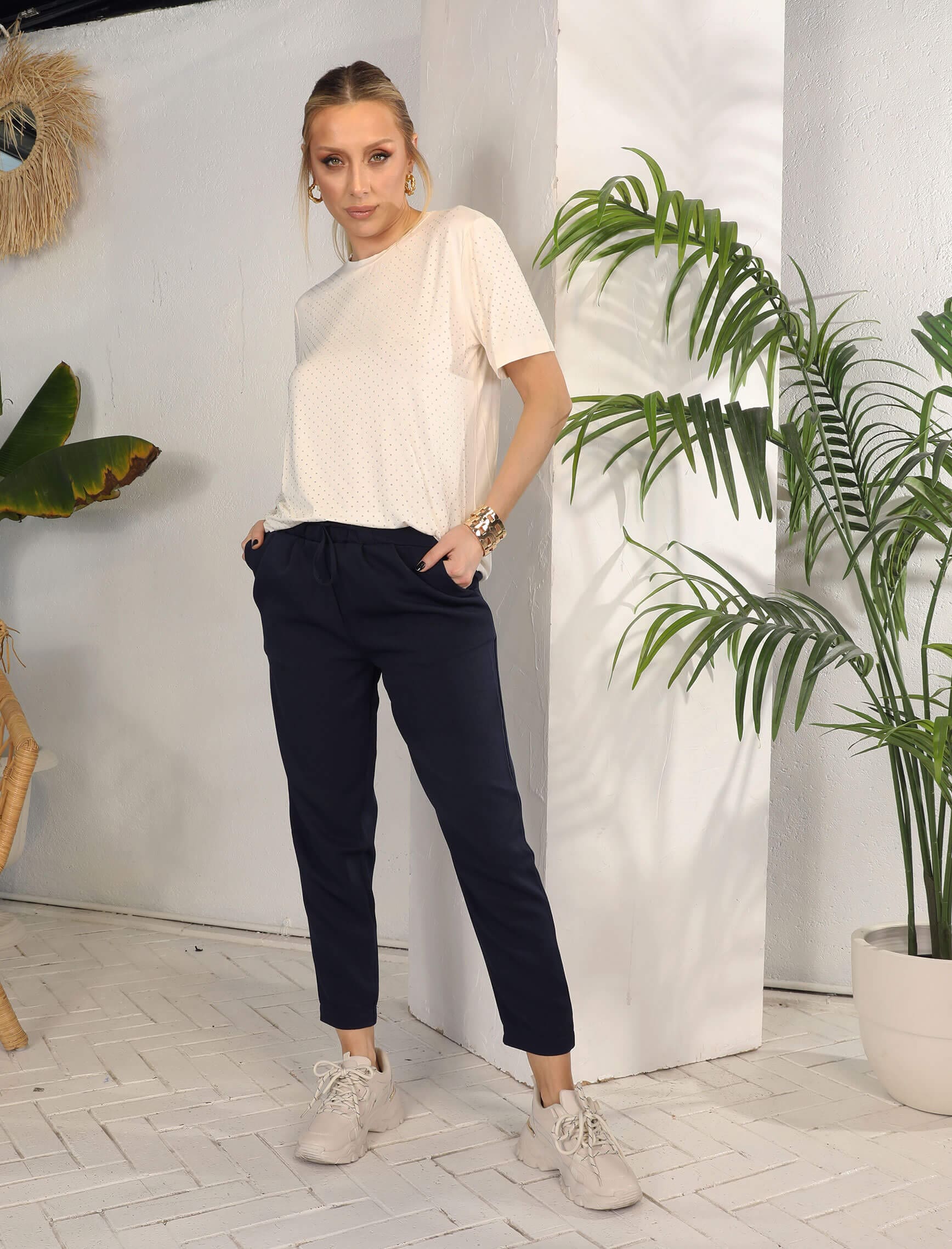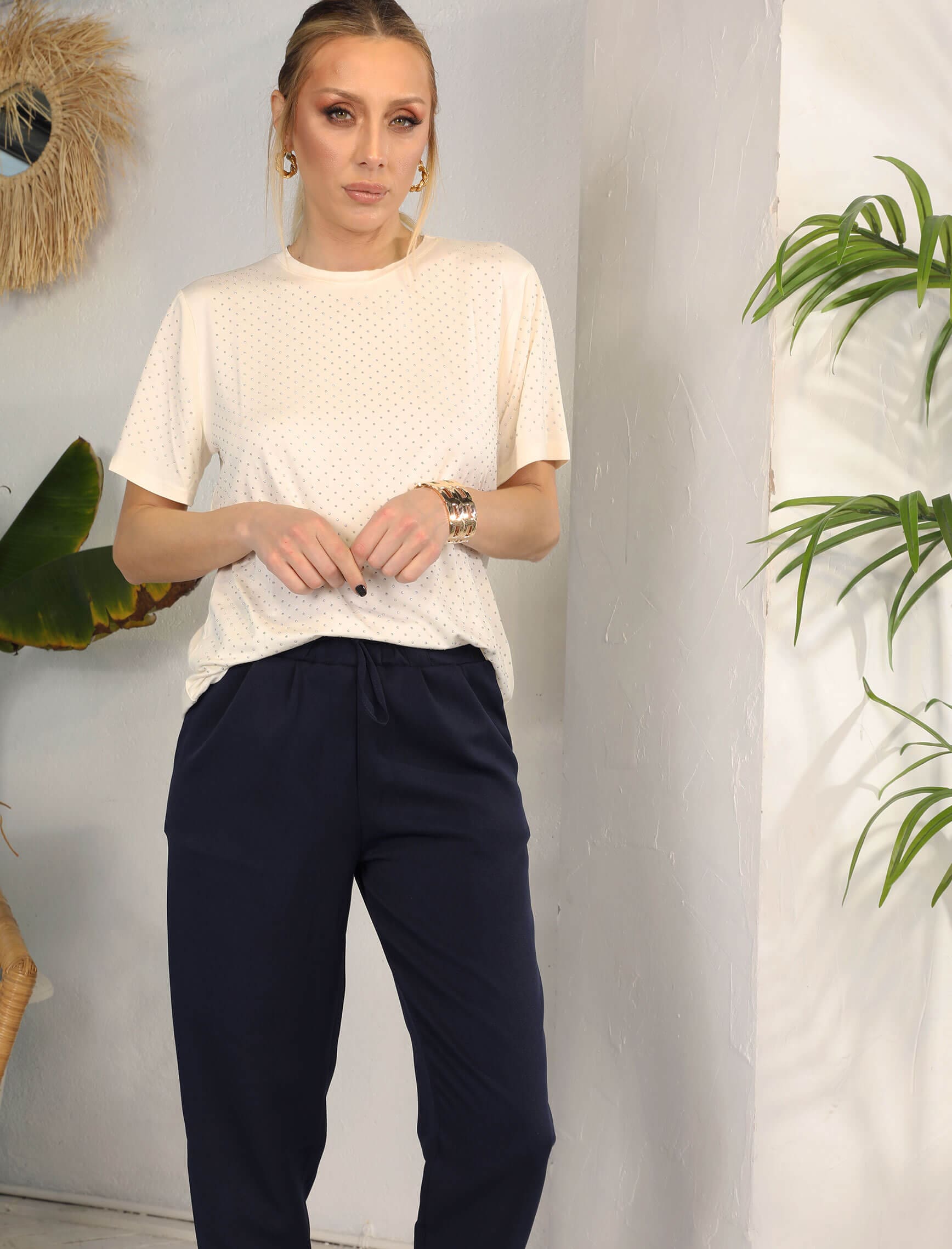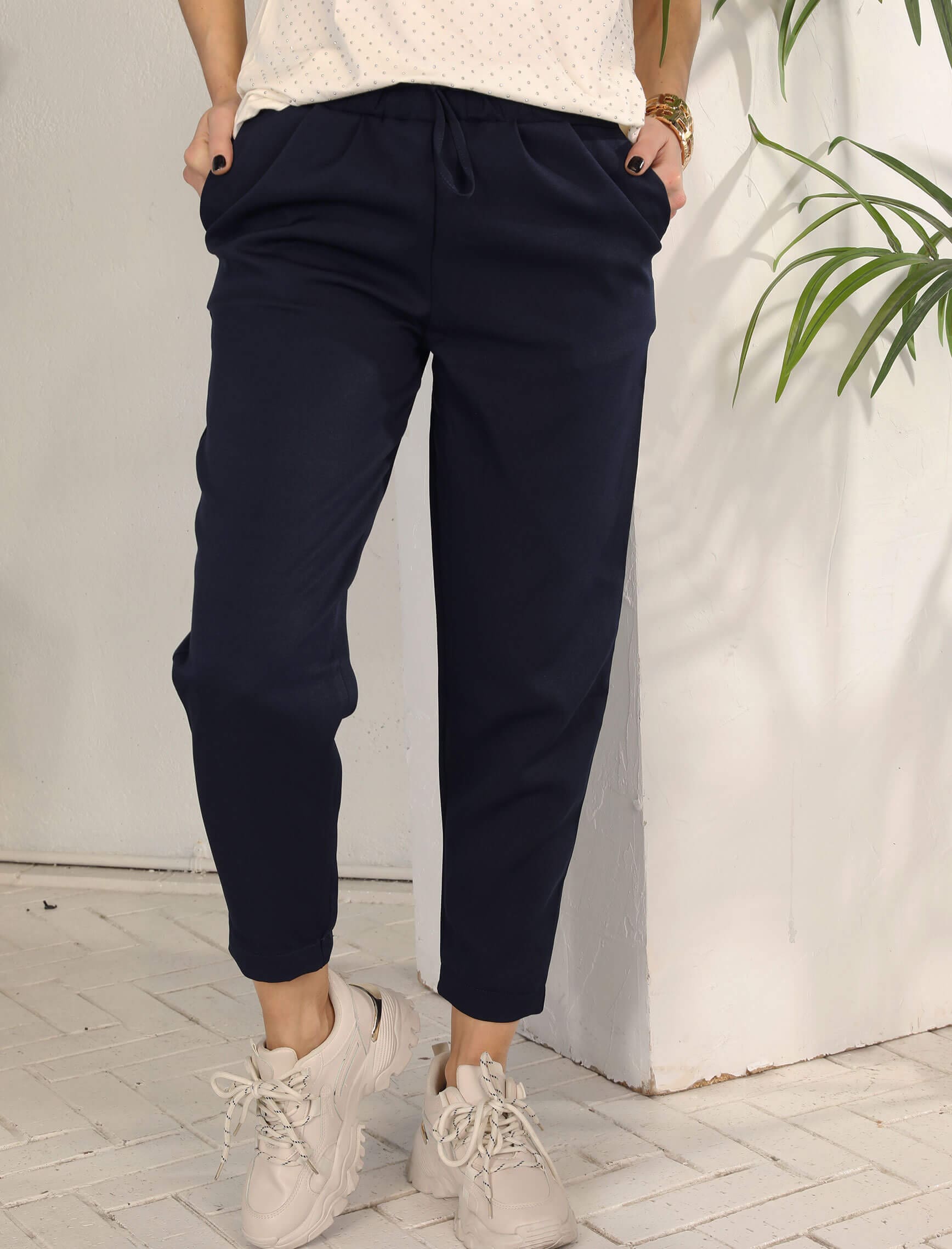 Lacivert Rengi Lastik Bel Krep Pantolon