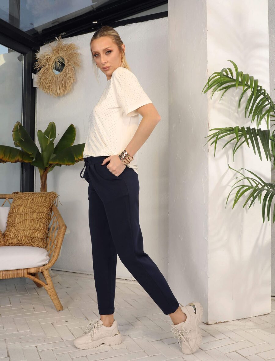 Lacivert Rengi Lastik Bel Krep Pantolon