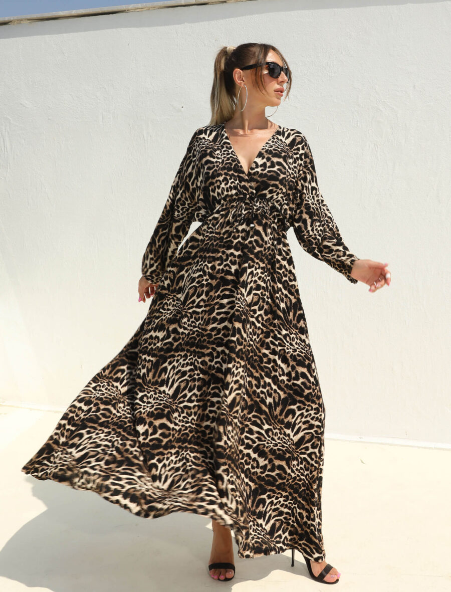 Leopar Kruvaze Elbise