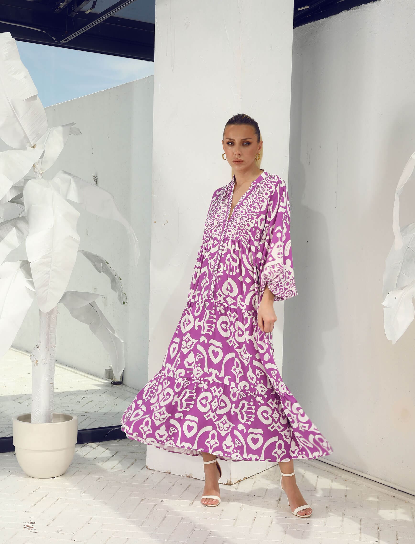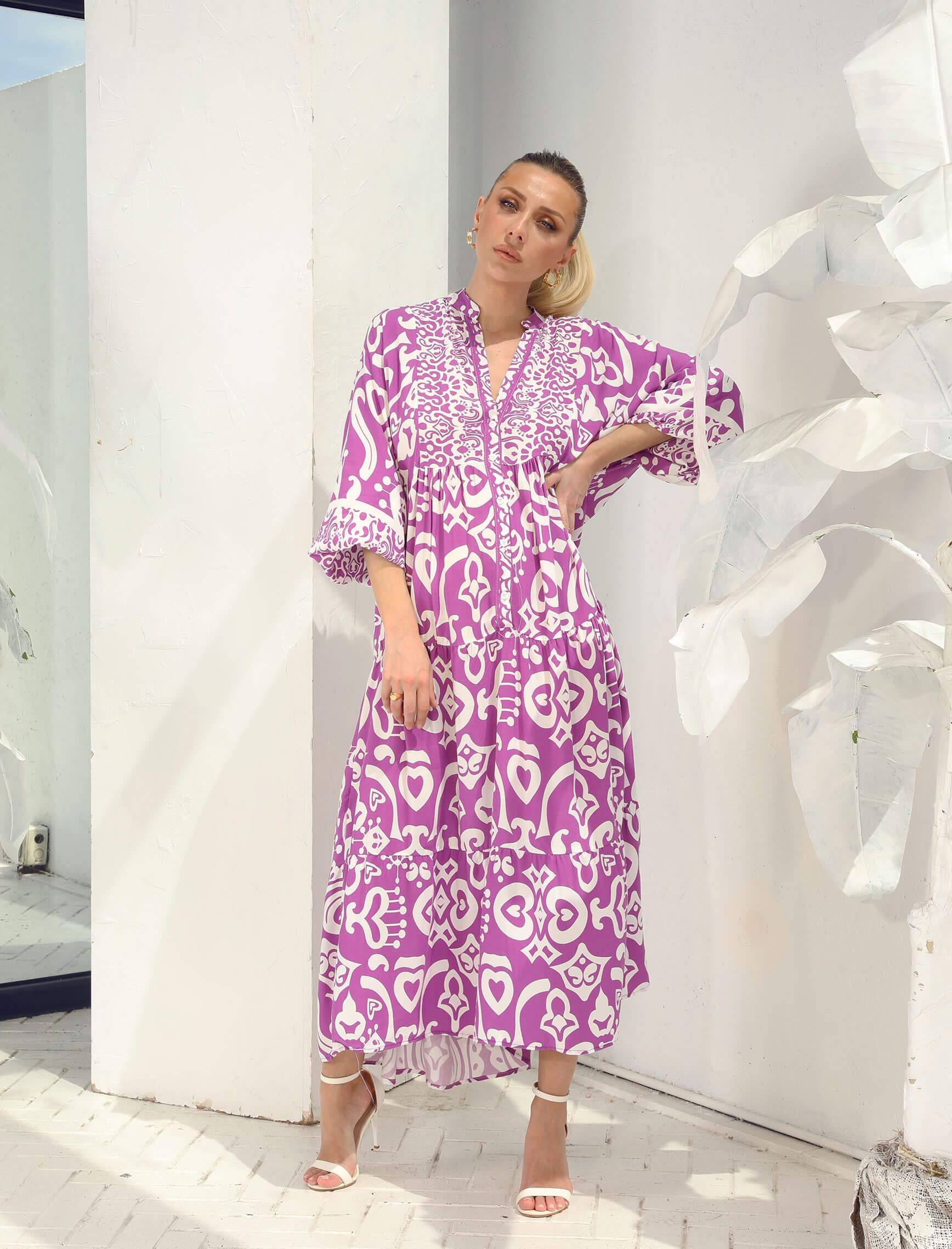 Leylak Beyaz Etnik Marino Geniş Elbise