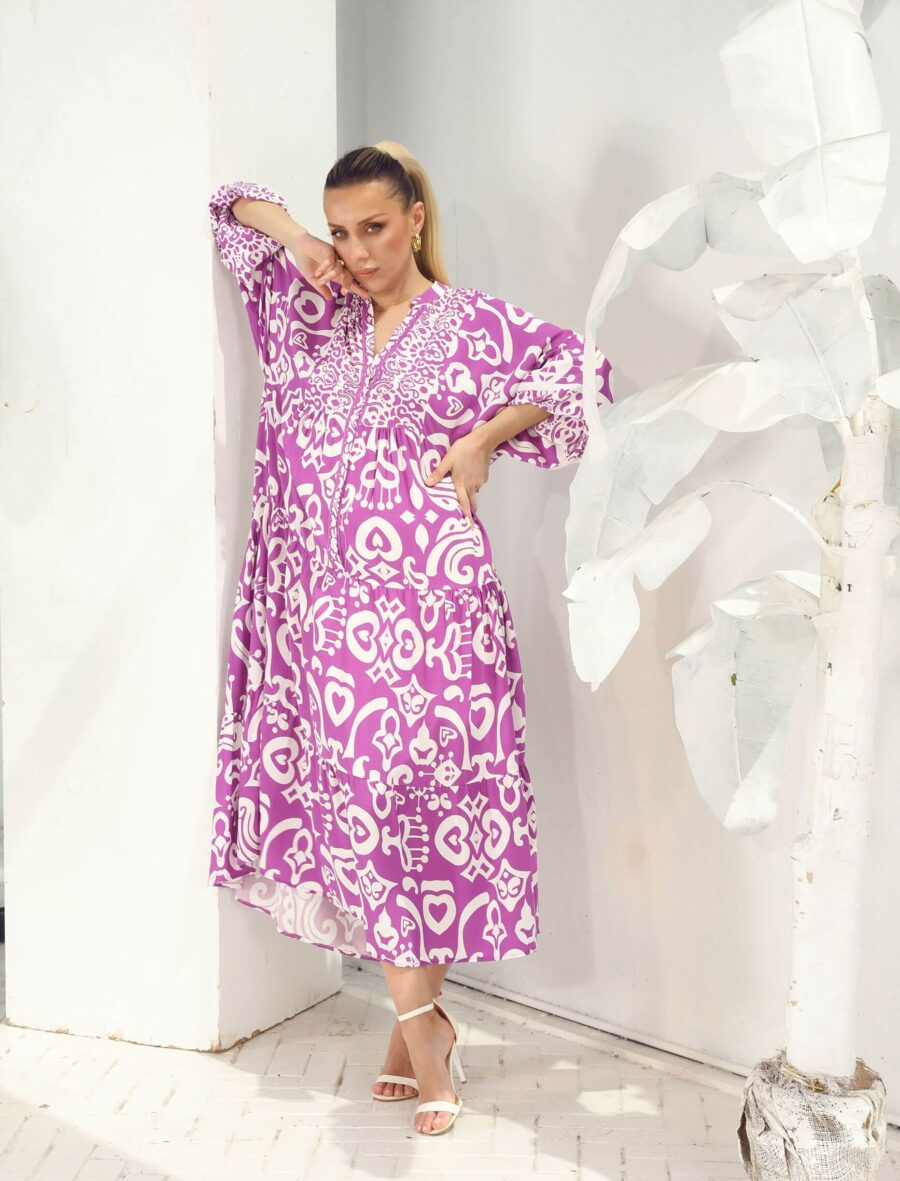 Leylak Beyaz Etnik Marino Geniş Elbise