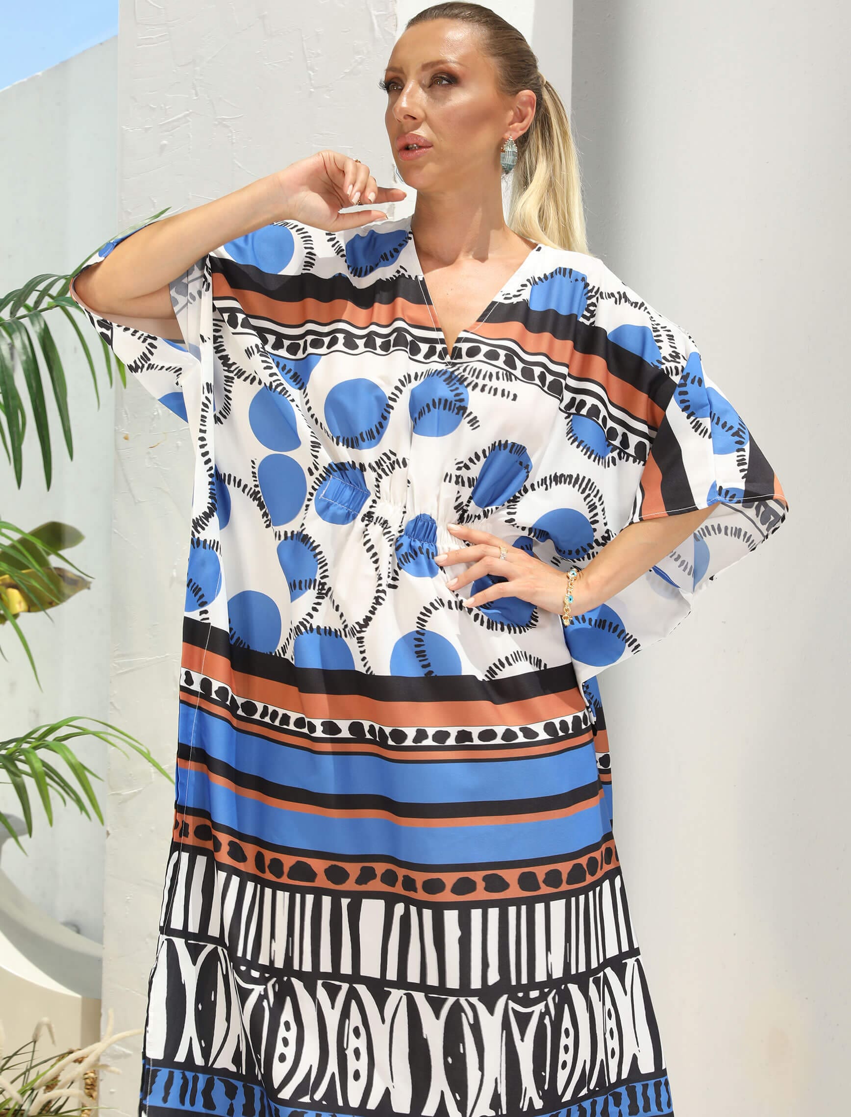 Mavi Camel Daire Desen Elbise