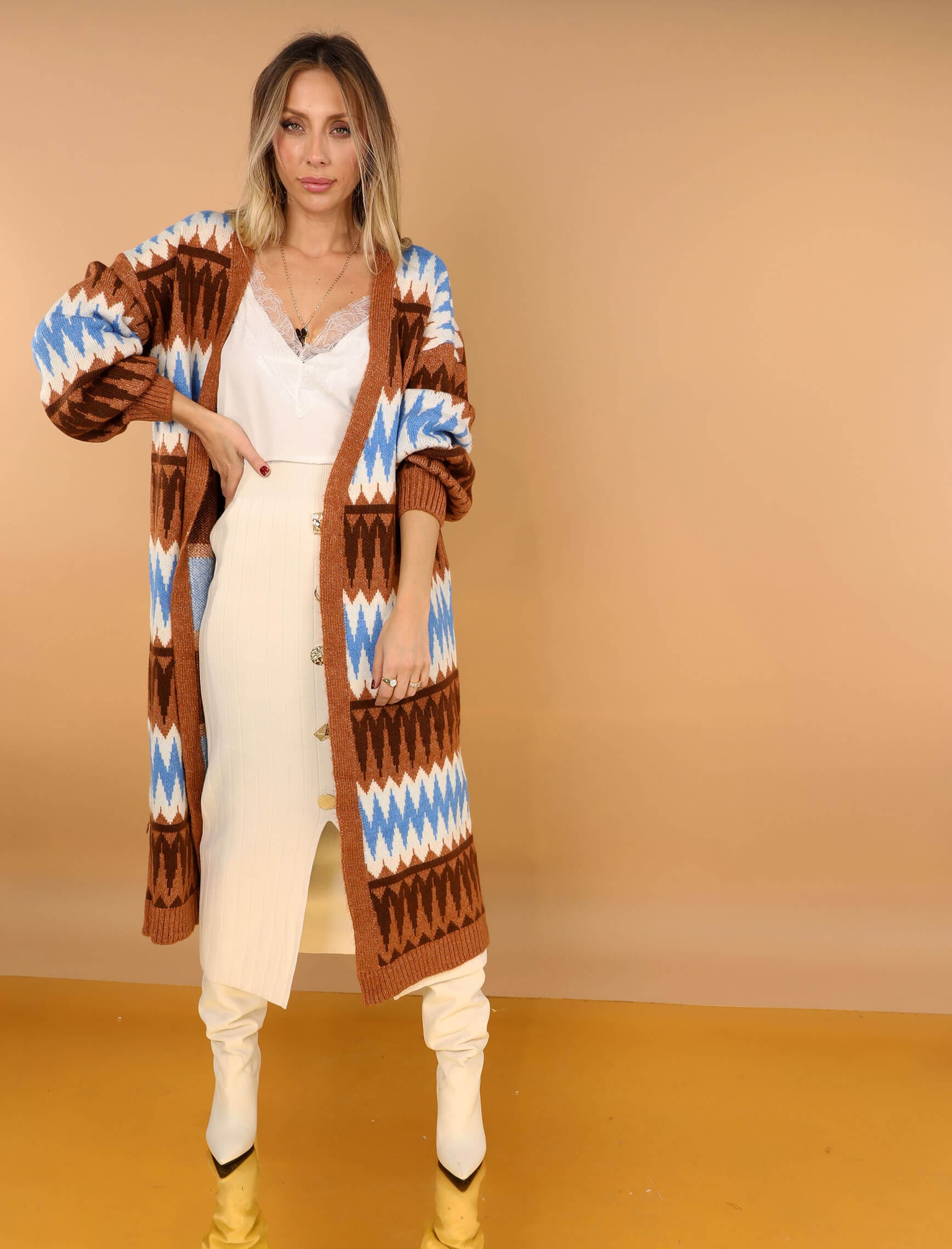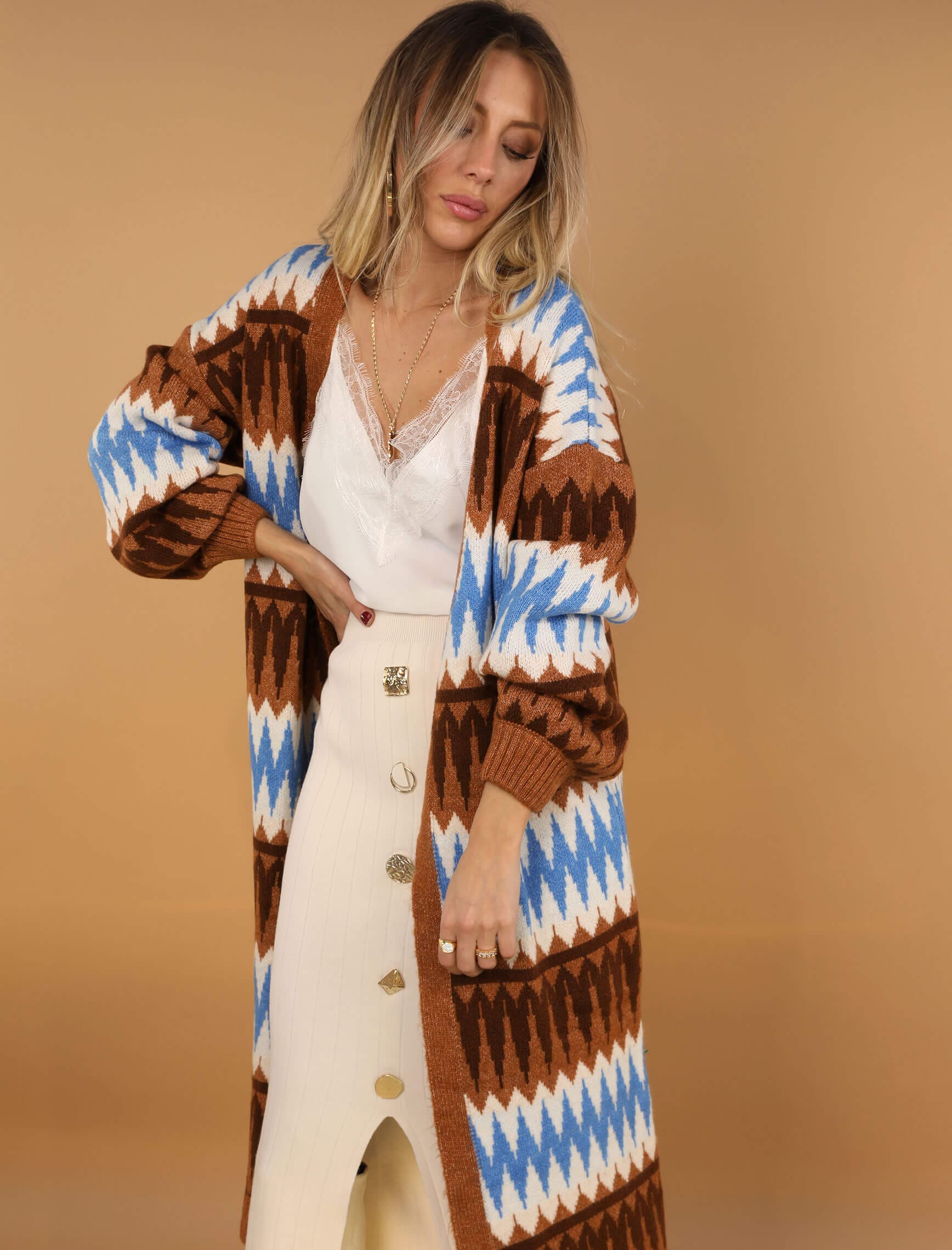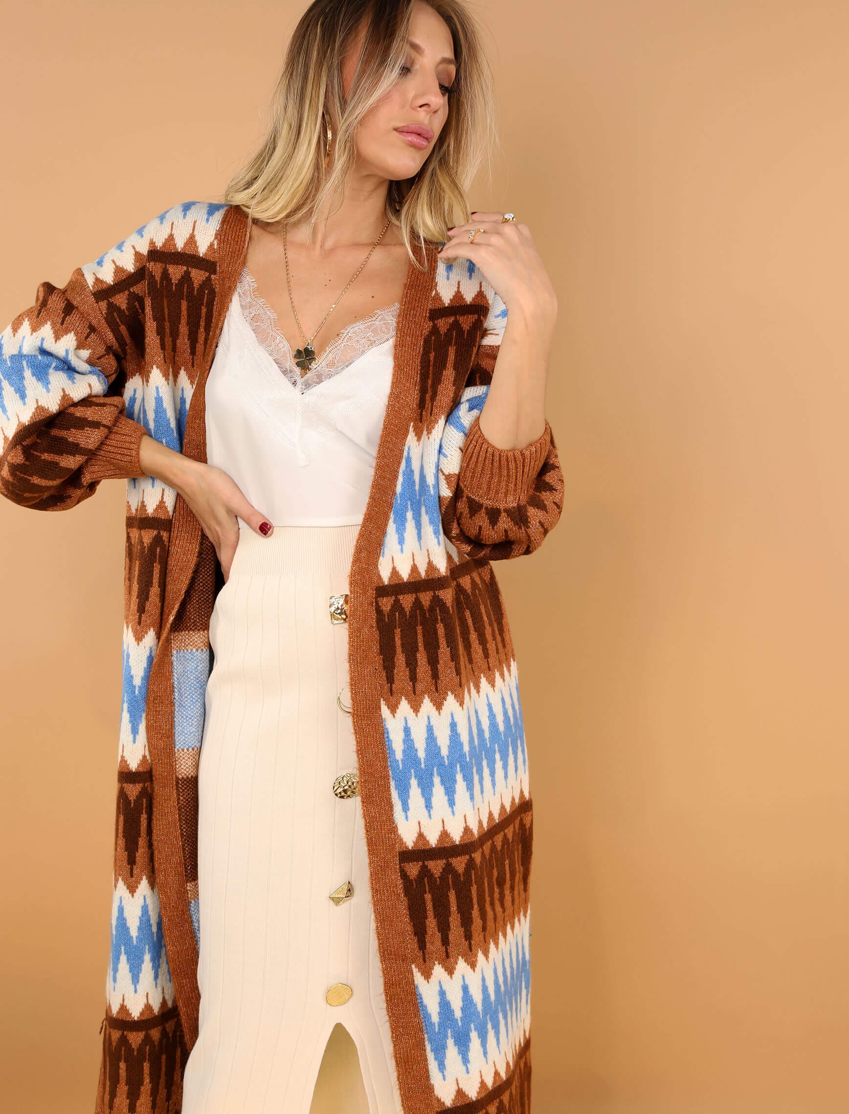 Mavi Kahve Zikzak Hırka